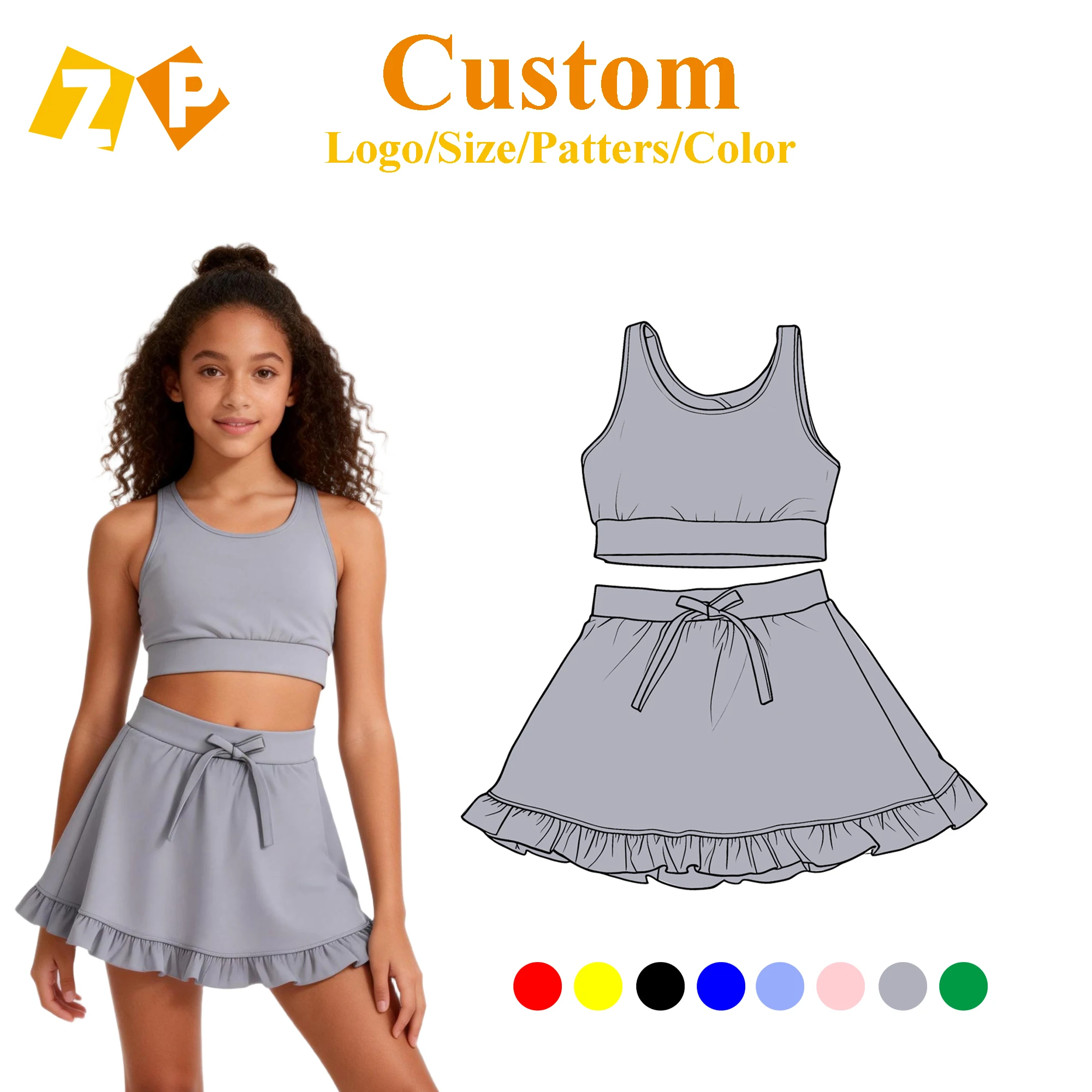 Be the first to review “Best Sale Grey Kids Yoga Outfit New Style Factory Customization Sleeveless Crop Tank Skirt Set”