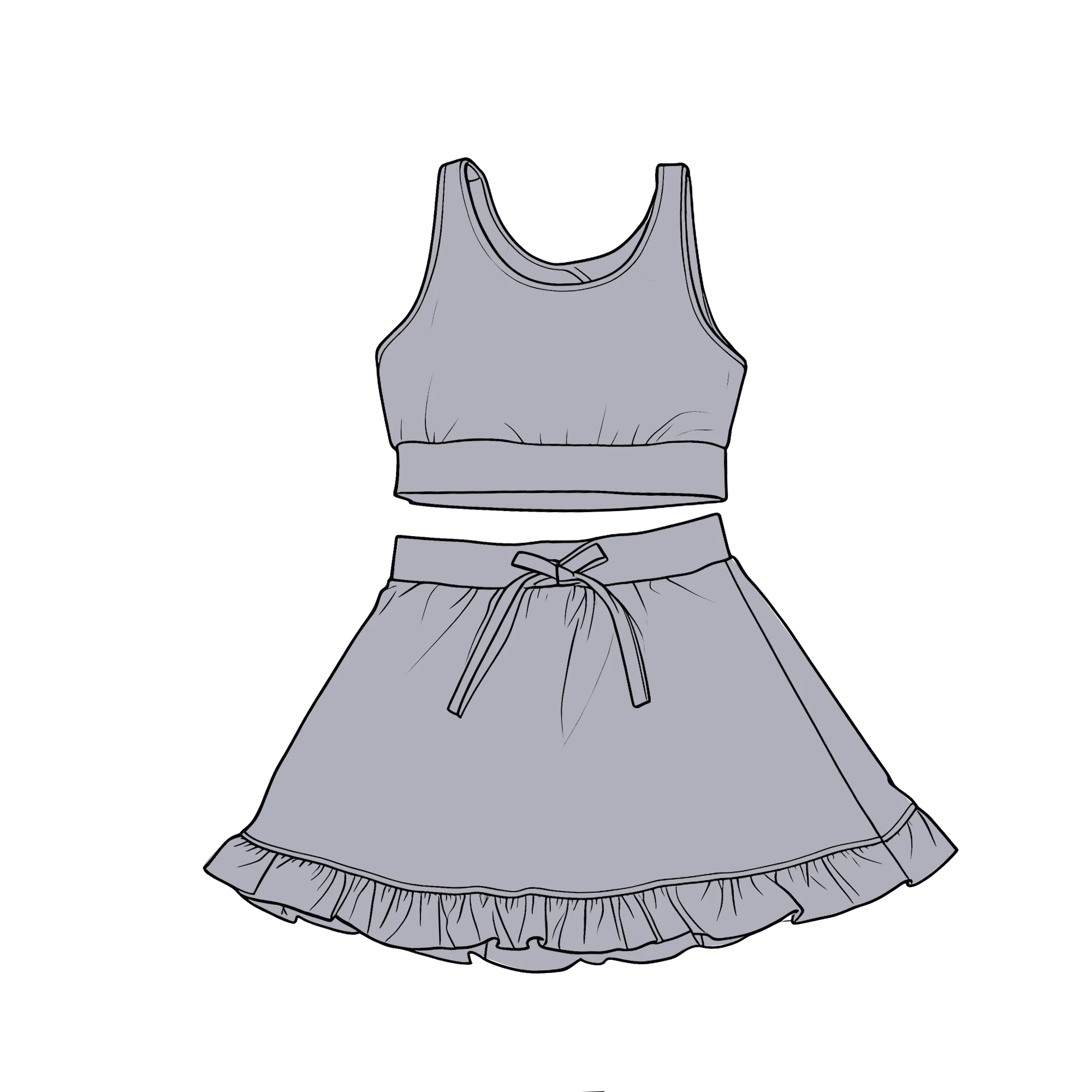 Best Sale Grey Kids Yoga Outfit New Style Factory Customization Sleeveless Crop Tank Skirt Set