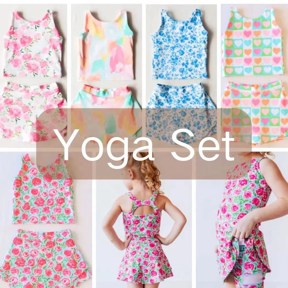 Children’s Wear Print Yoga Training Dance Sports Suit Yoga Set Nylon Spandex Two Piece Active Sport Wear Set for Kids