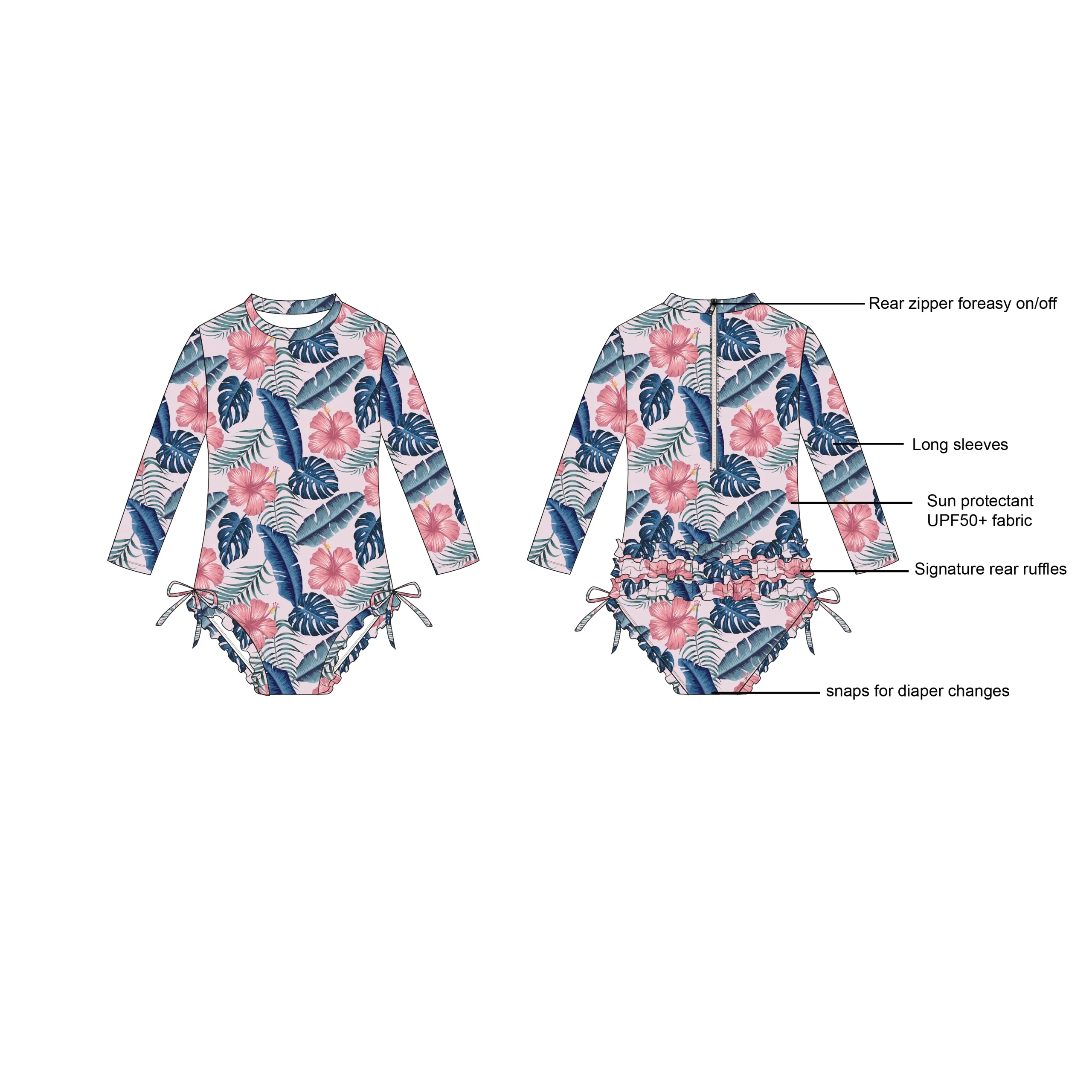 Be the first to review “Custom Girls Bathing Suit Recycled Kids Sun Protectant UPF50+ Fabric Bikini Long Sleeves Swimwear Signature Rear Ruffles”
