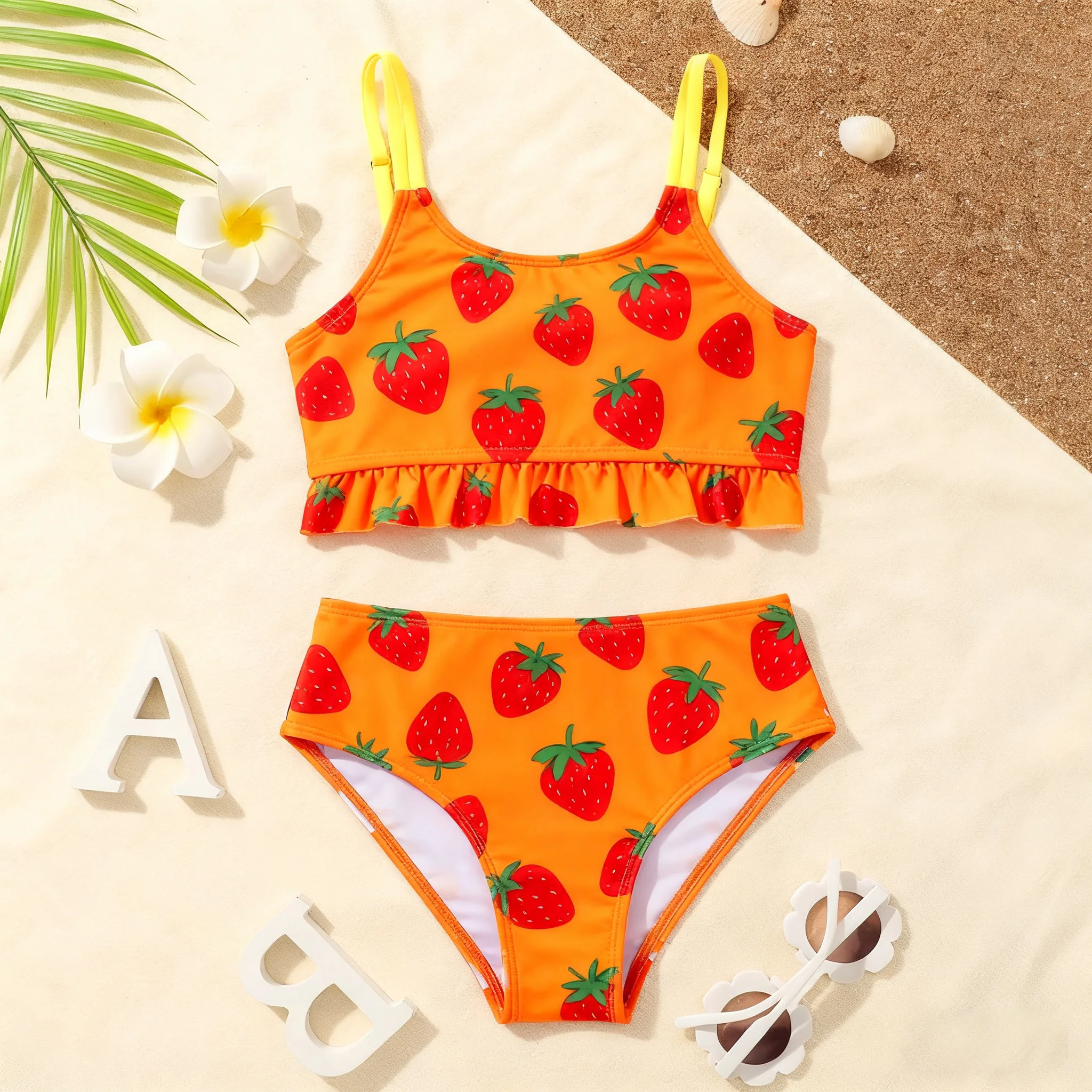 Customized Girls Swimwear Sets Rash Tops and Bikinis on Sustainable Fabric for Children’s Swim Dresses