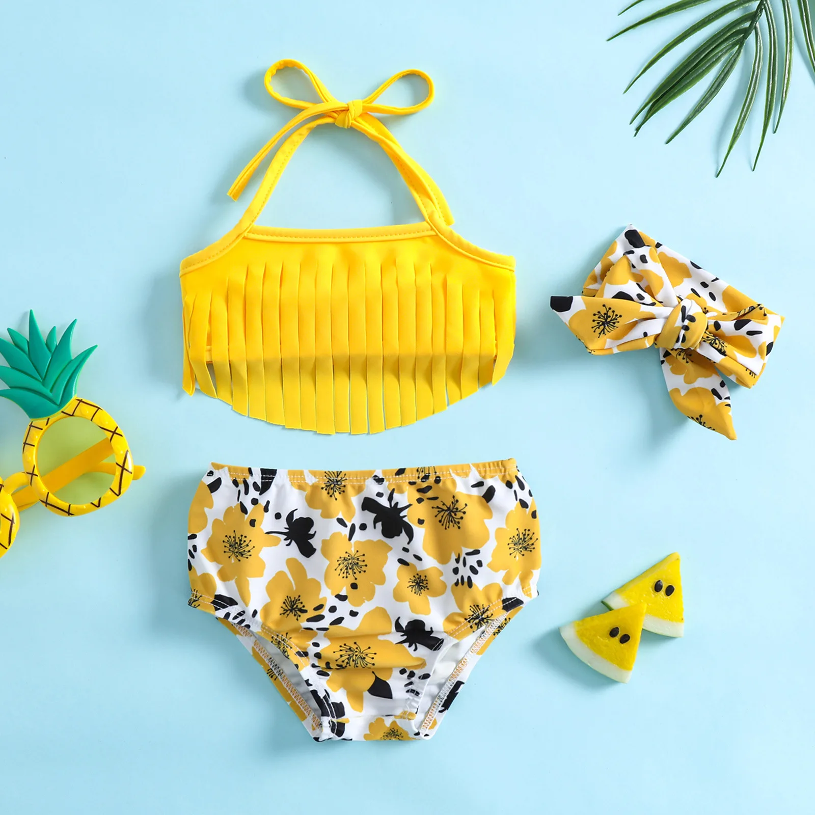 Cute Tiger Girls’ Swimsuit Wholesale Watermelon Printed Tassel Suspender Split 3-piece Set Cute Bow Tie Beach Wear Kids Swimsuit