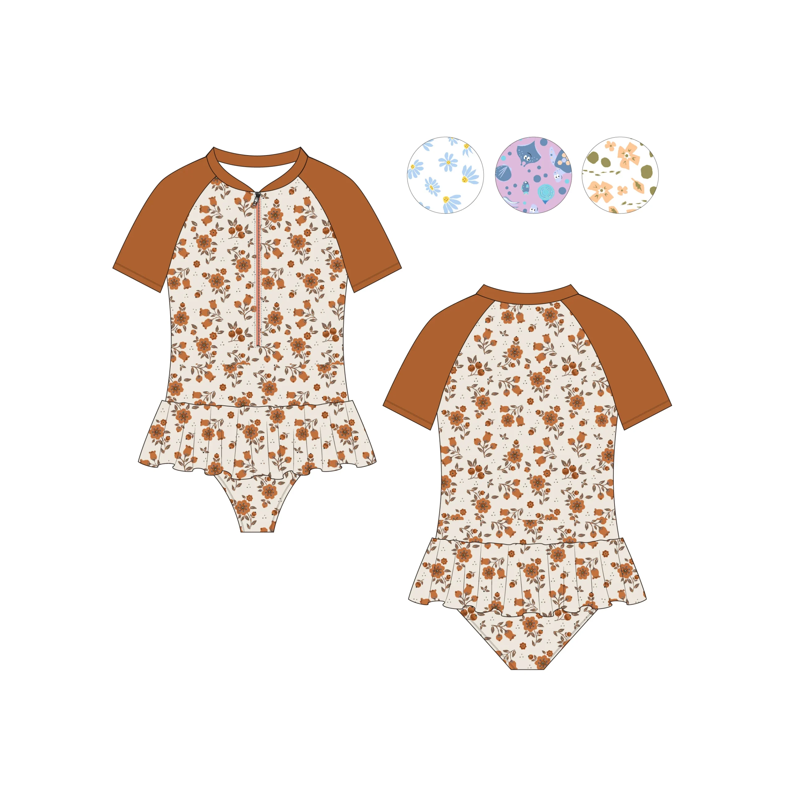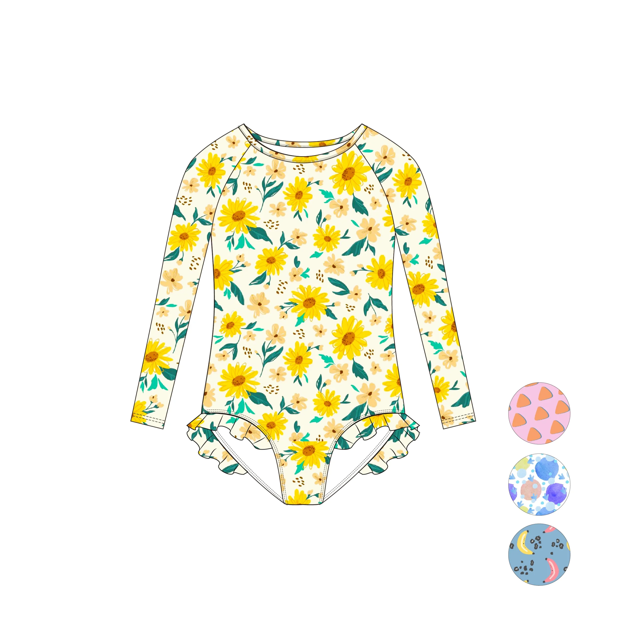 FIELD BALANCE Custom Beach Long Sleeve Bathing Suit Toddler Kids Swimsuit One Piece Swimwear for Girl