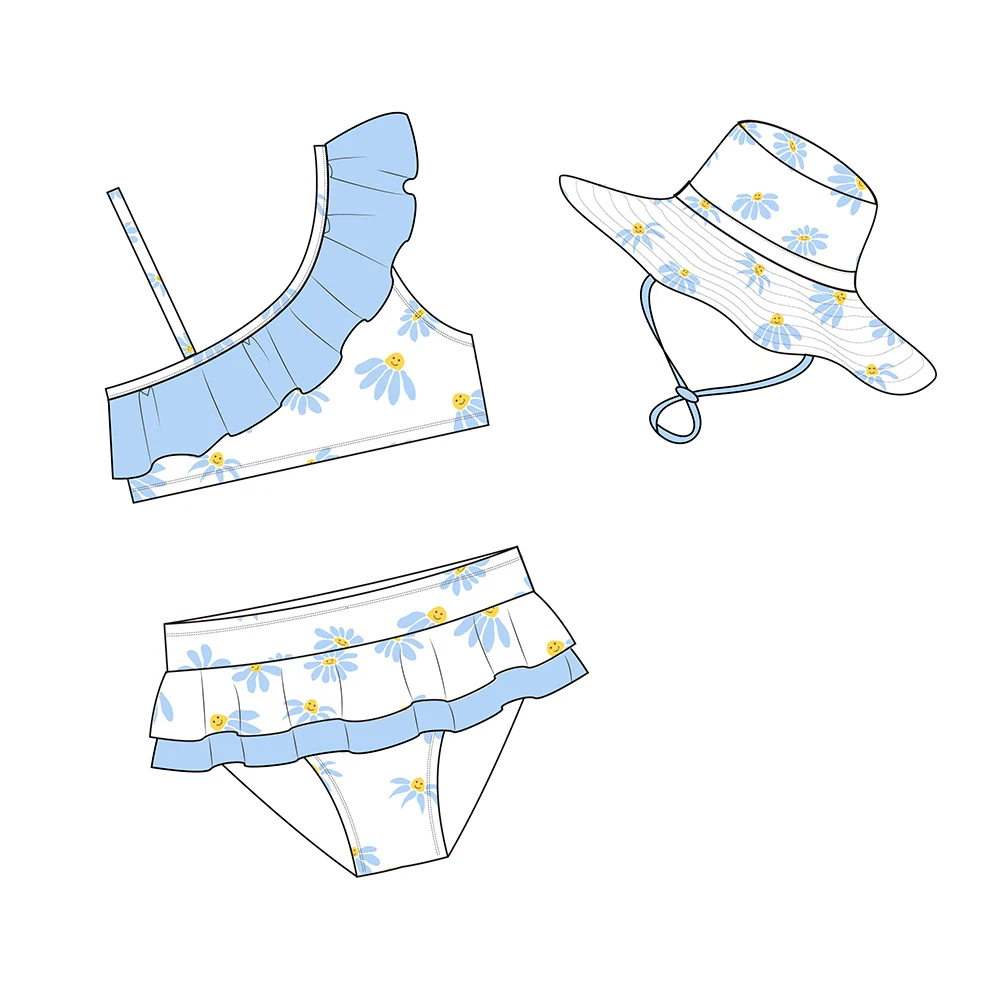 FIELD BALANCE Custom Off Shoulder Swimming Gear Kids Swimwear Beachwear Swimming Hat Girls Mini Bikini