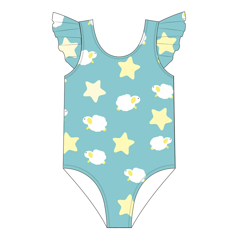 FIELD BALANCE Custom Print One Piece Children Swimming Suits Girls Swimsuit Kids Ruffle Beachwear Swimwear