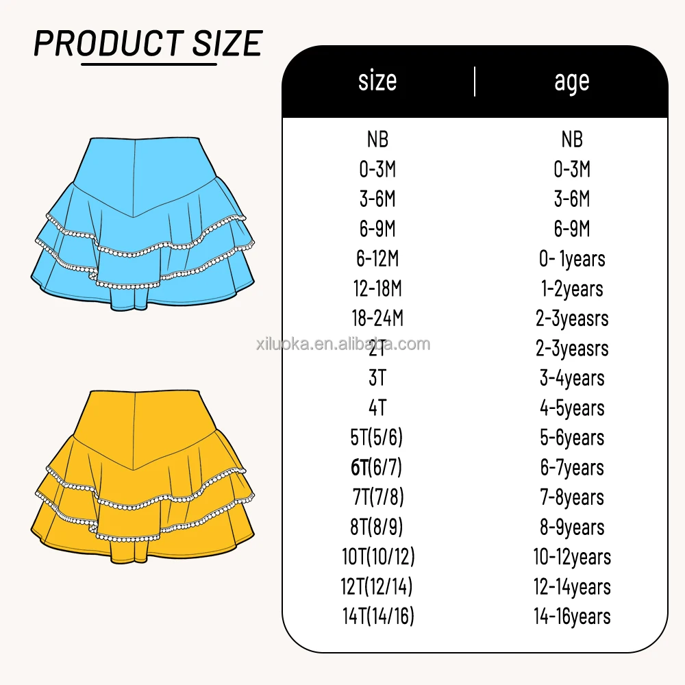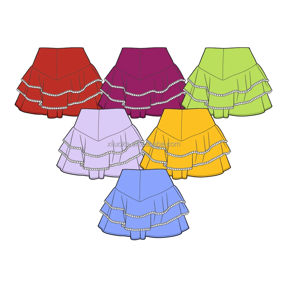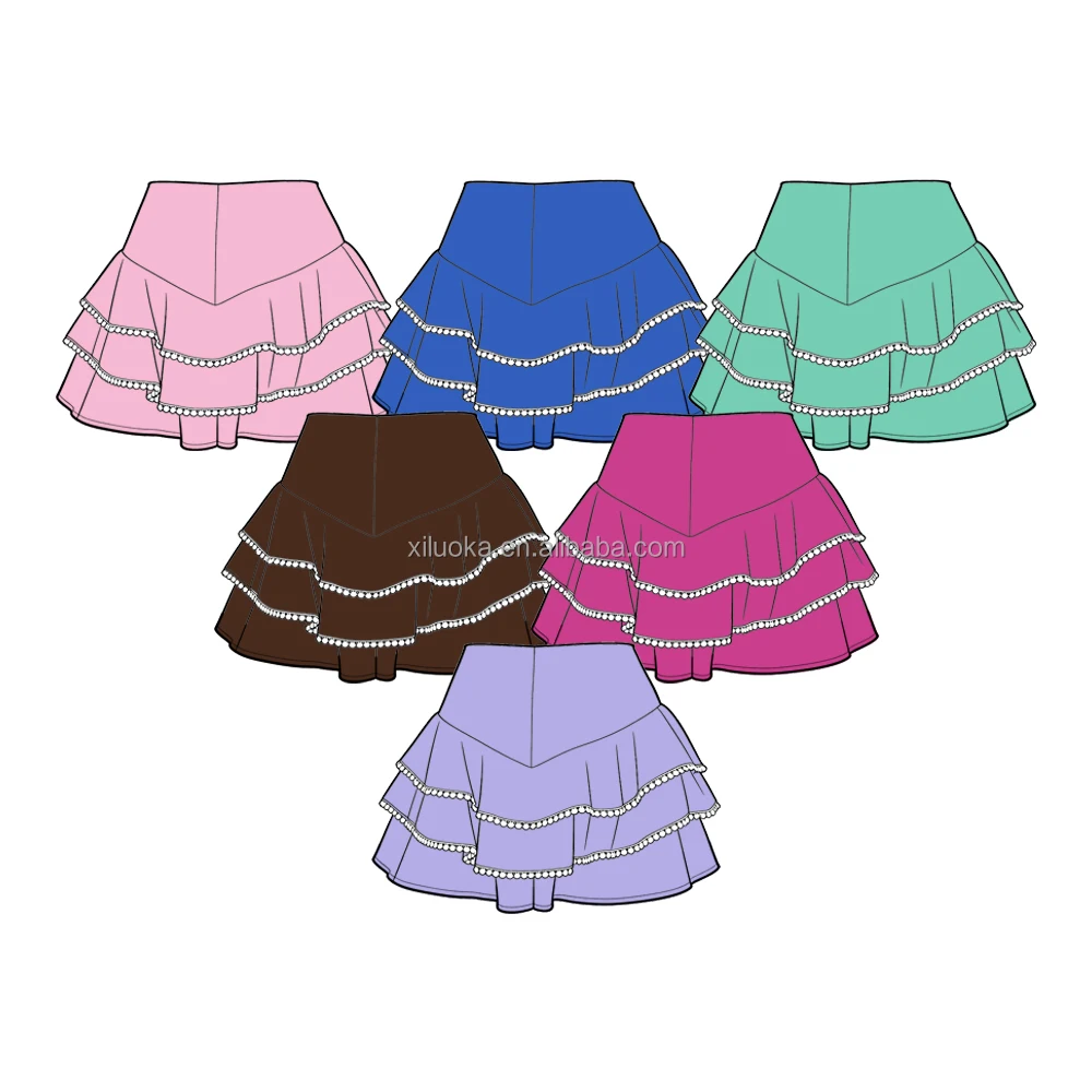 Girls Active Casual Yoga Skirt Multi Layer Hem Lace Trim Built-in Shorts Custom Size