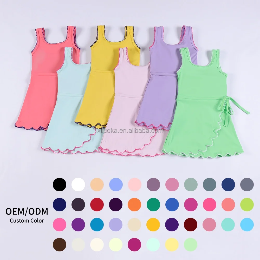 Girls Boutique Yoga Dress Hot New Sleeveless Tank Embroidery Hem Built-in Shorts Custom Print