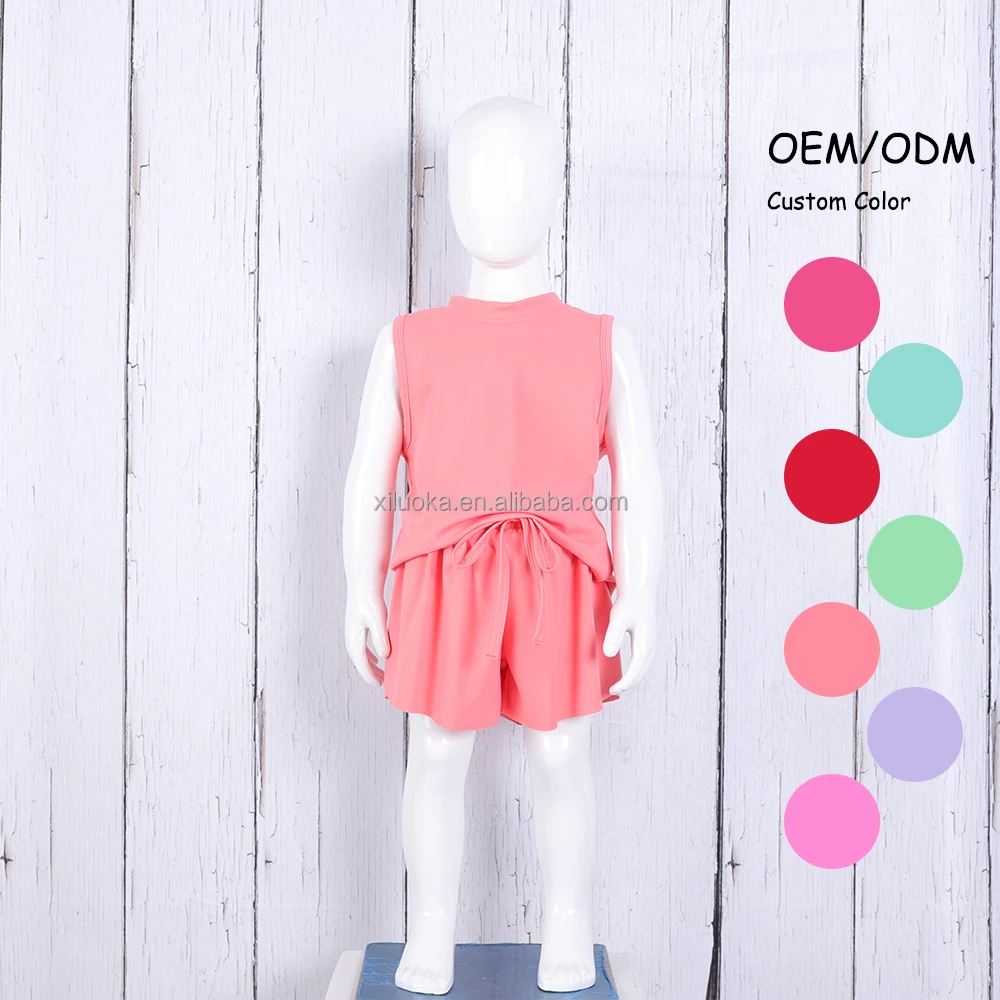 Girls Hot New Yoga Set Solid Color Sleeveless Tank Double Layer Shorts High Elasticity Custom Design