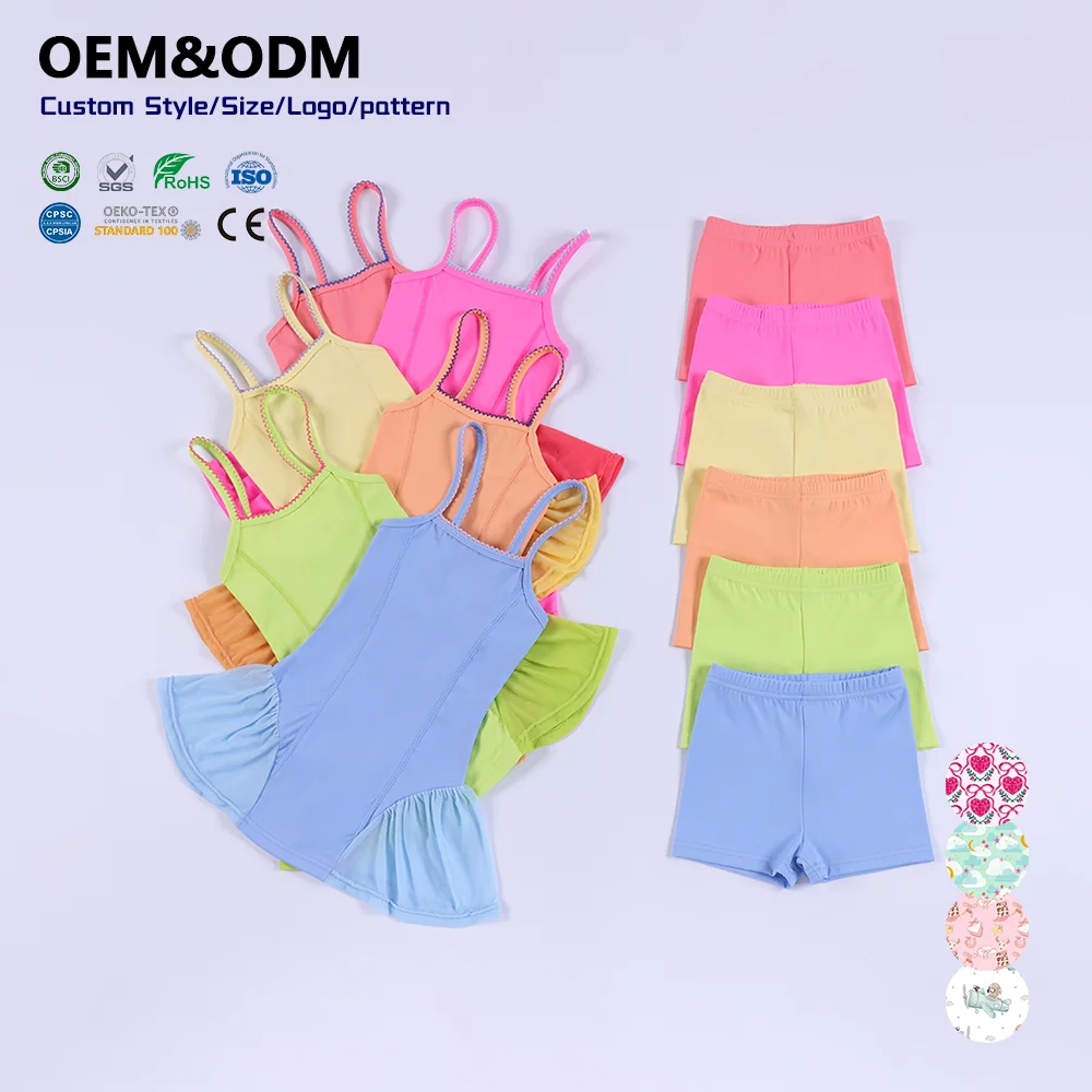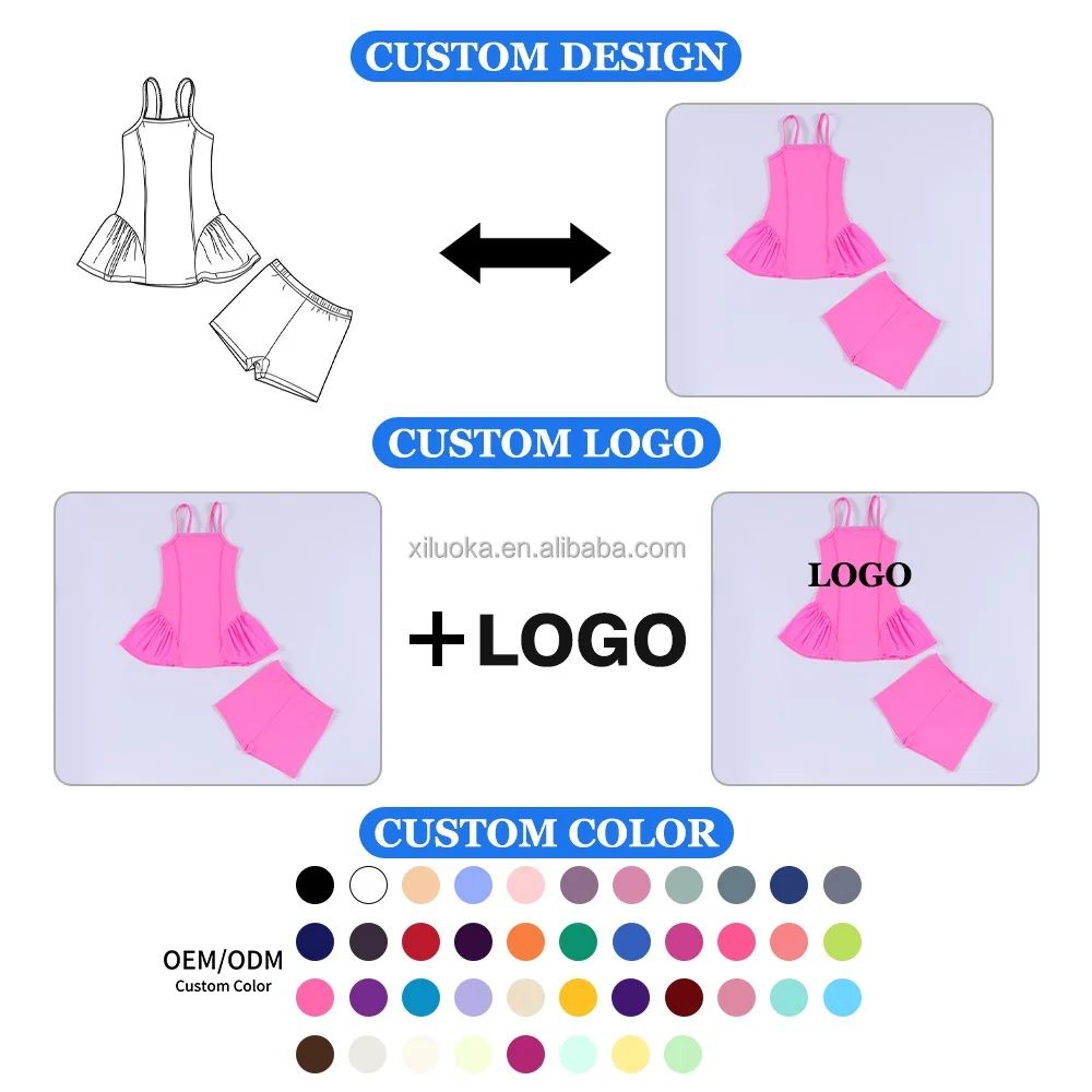 Girls Spaghetti Strap Yoga Dress Ballet Dance Mesh Side Embroidery Built-in Shorts Custom Design Logo Color