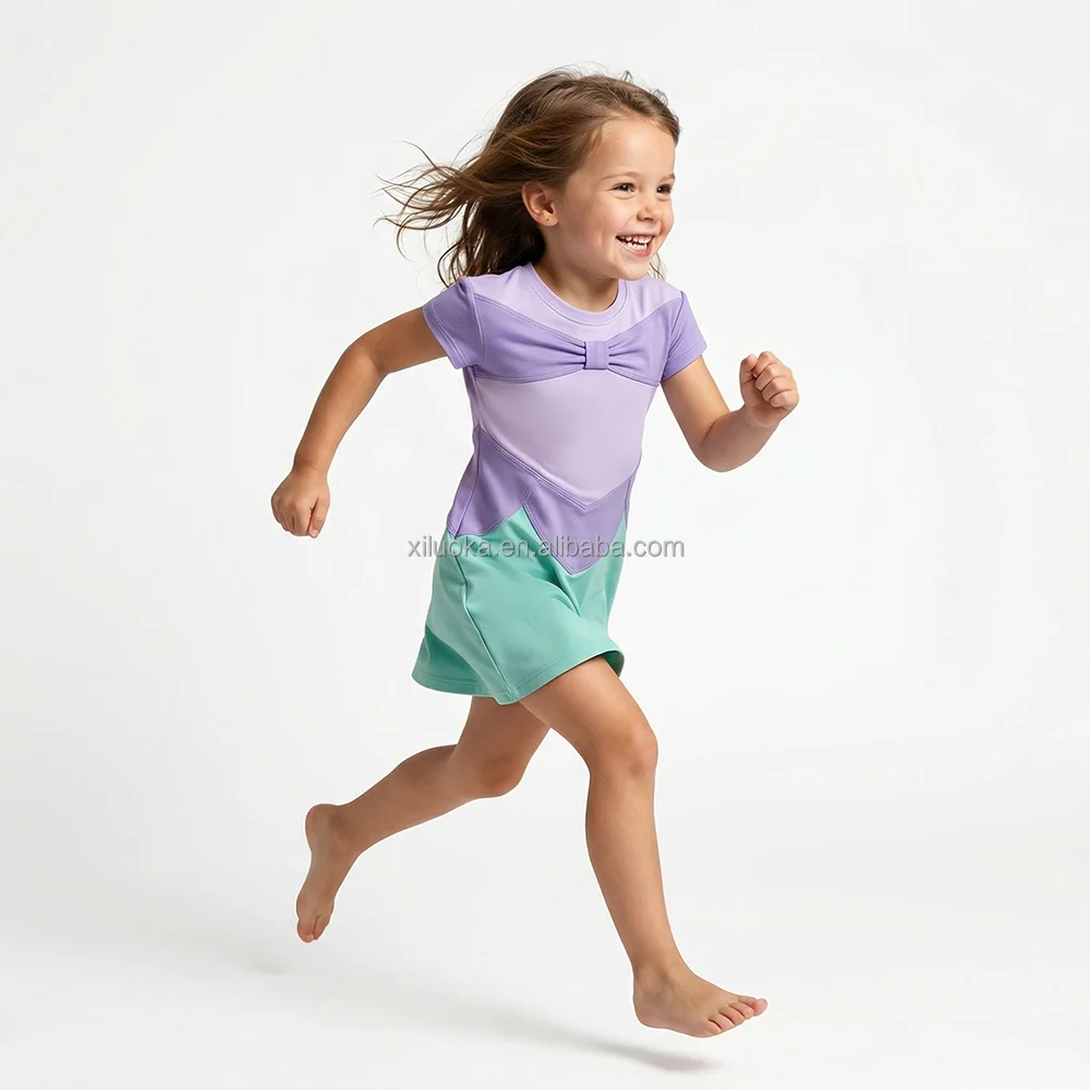 Girls Sports Yoga Dress Short Sleeve Color Block Tennis Dress Built-In Shorts Small Batch Custom Kids’ Dresses