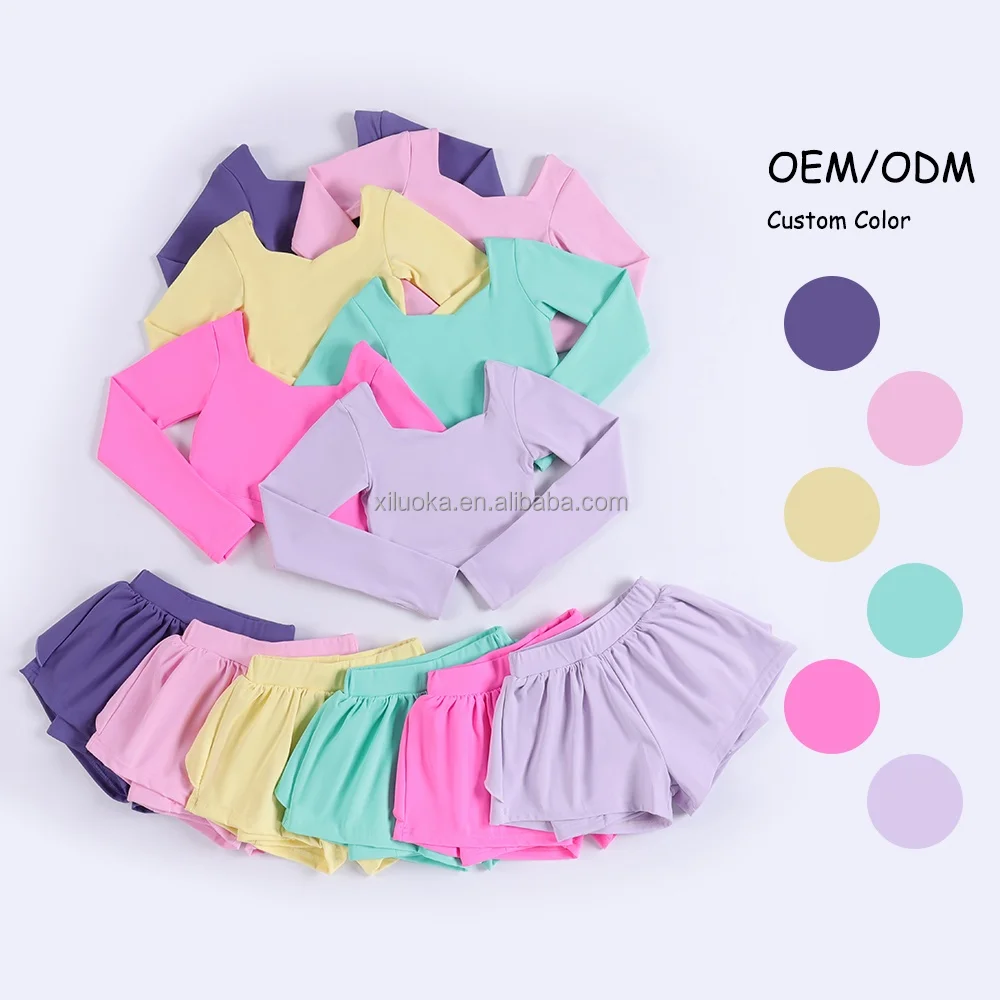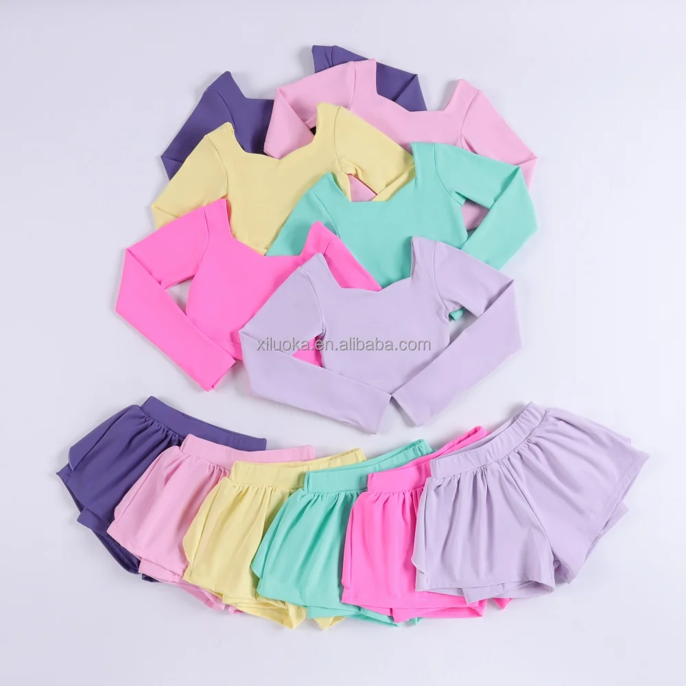 Girls Yoga Set Cross Back Long Sleeve Top With Loose Shorts Kids Workout Outfit Girls Clothing Sets