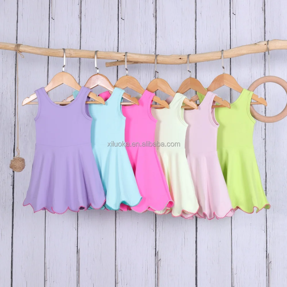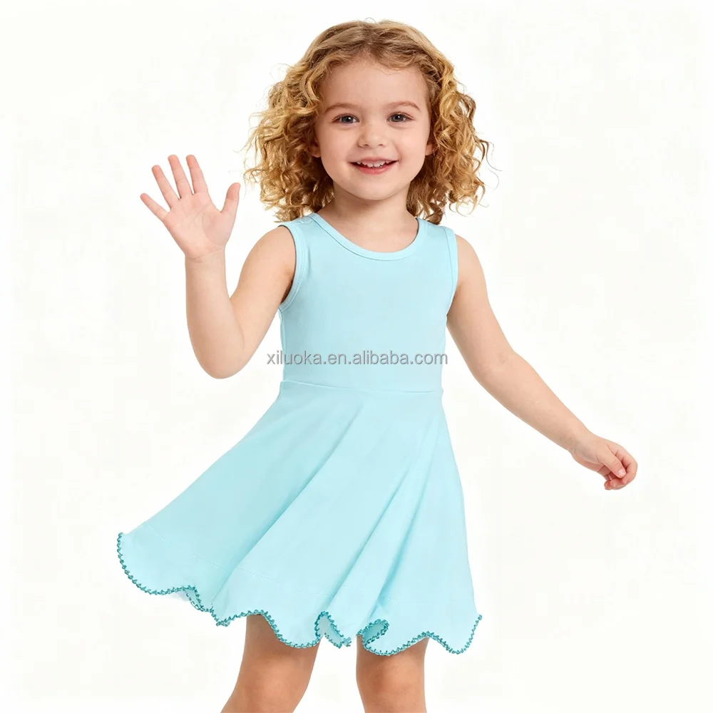 Girls Yoga Sleeveless Dress Mystery Box Slim Fit Embroidery Hem Built-in Shorts