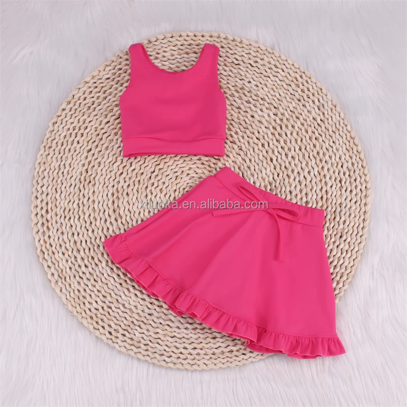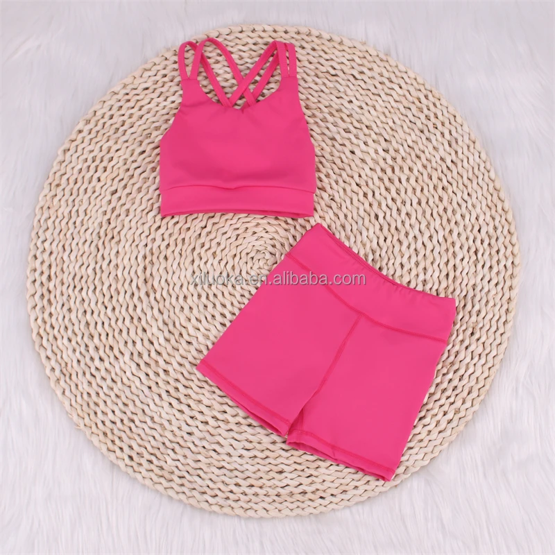 Hot Pink Girls Exercise Workout Activewear Sweet Plus Size Yoga Clothes Custom Logo Fitness Dress With Shorts