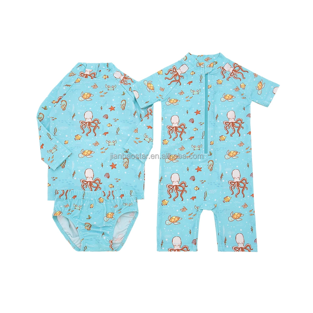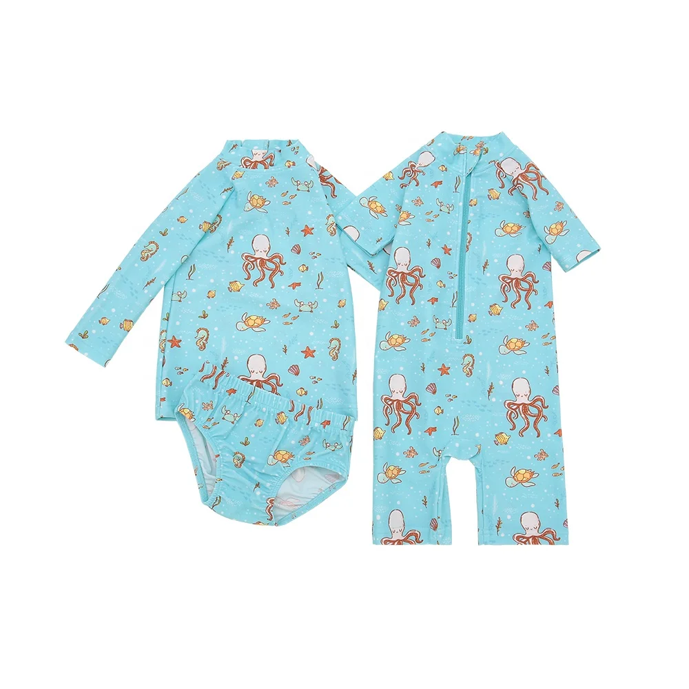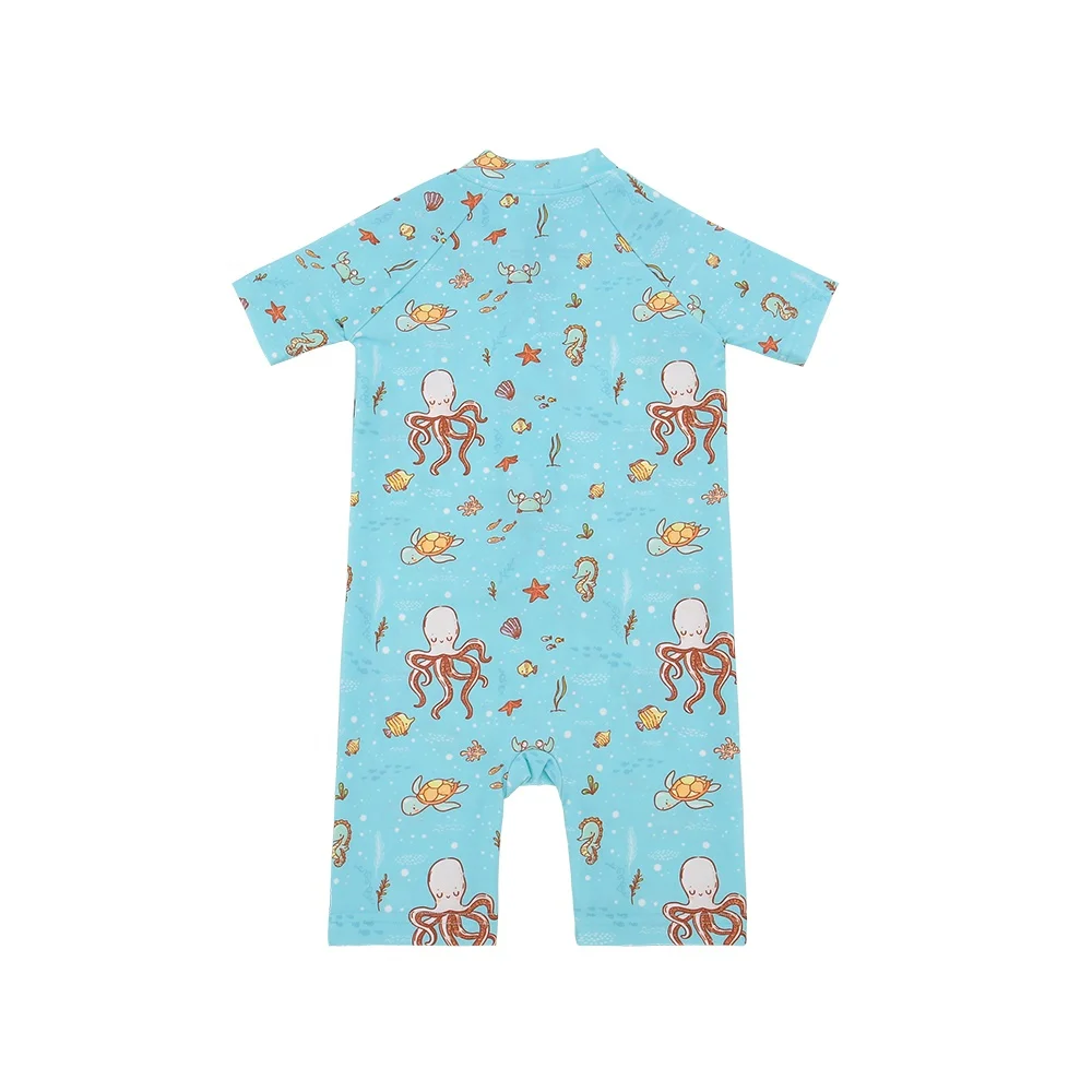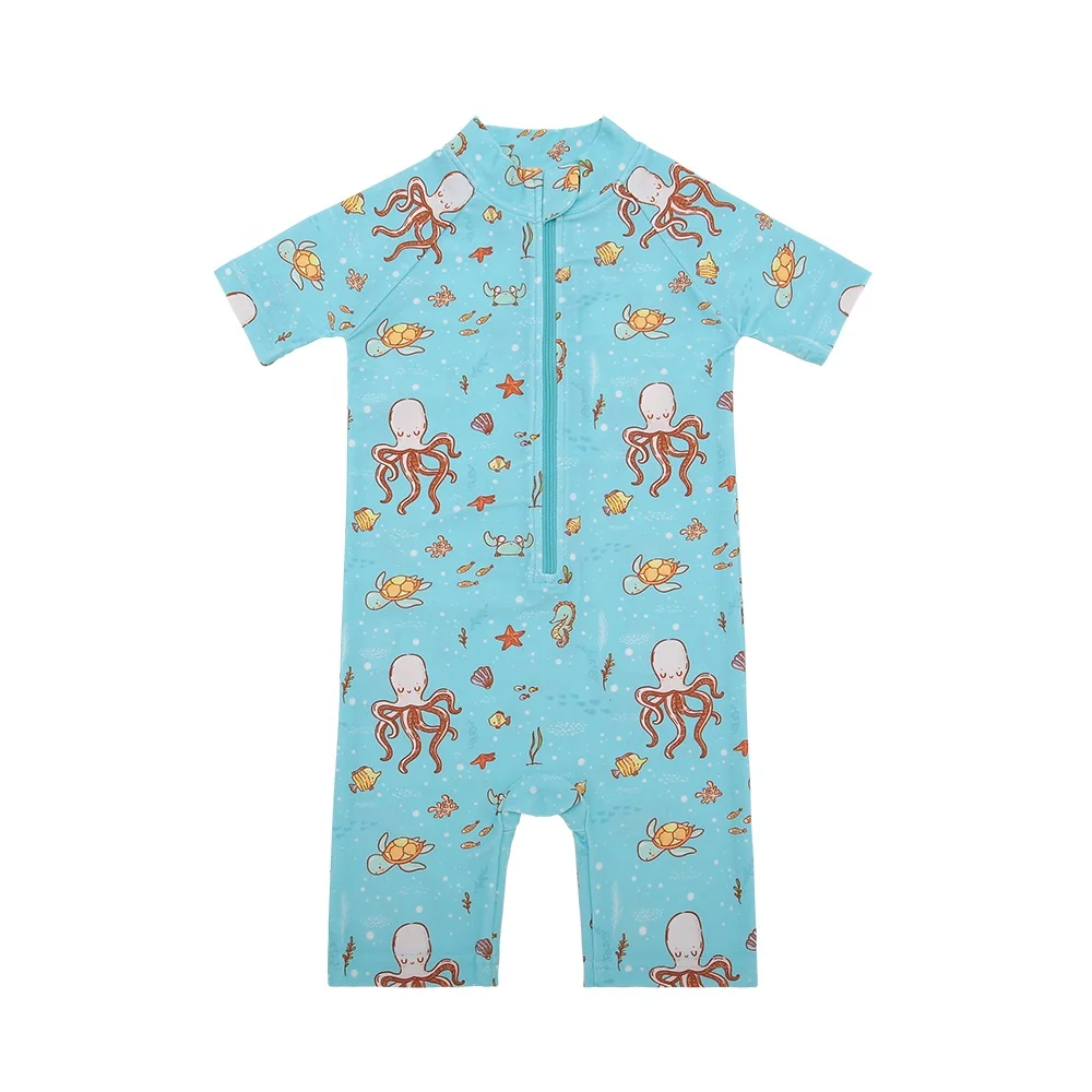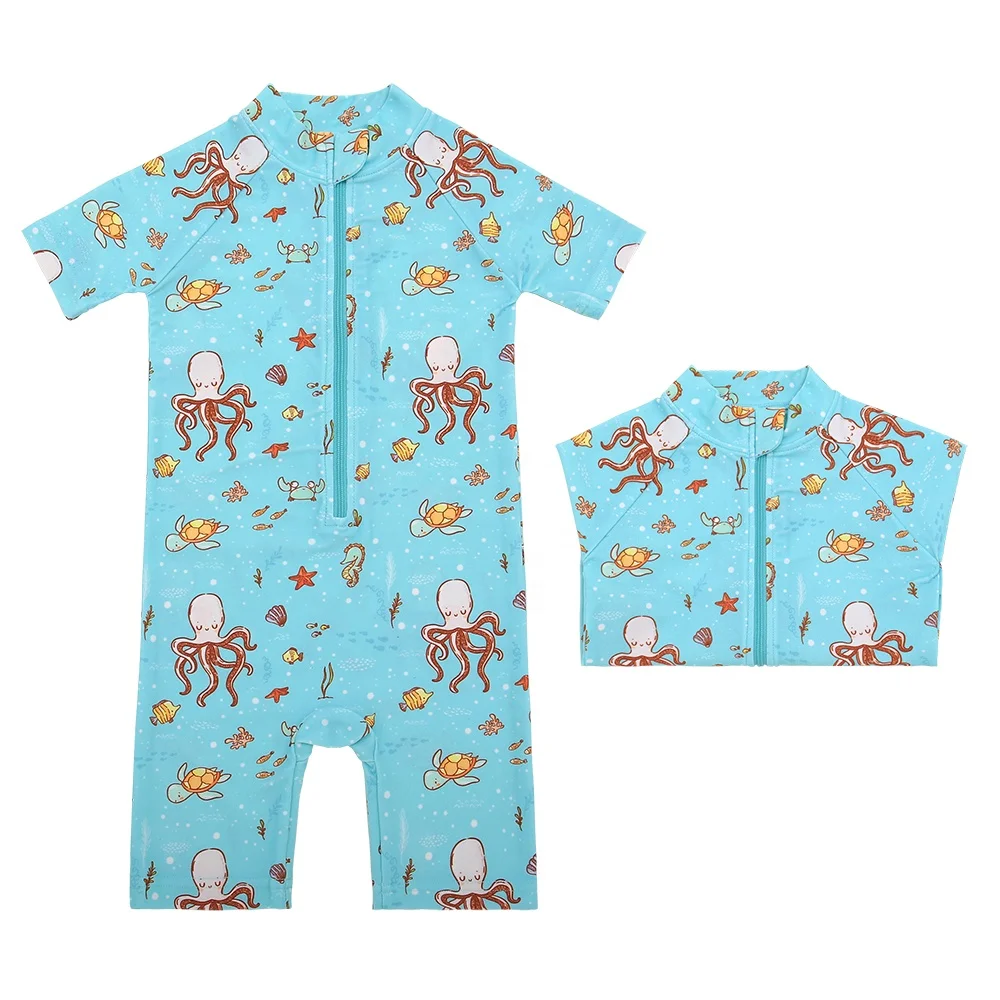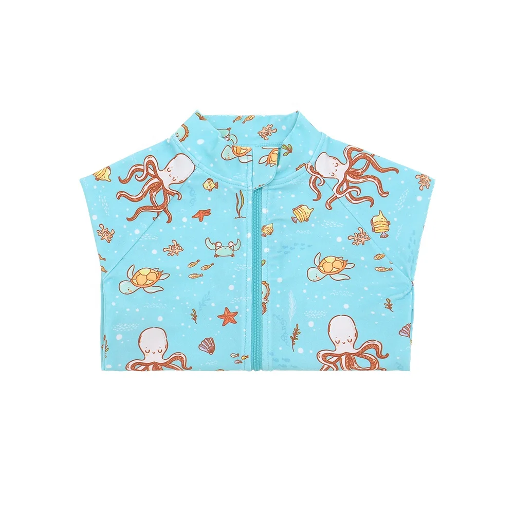 Hot Sale Custom Baby Swimwear New Arrival Summer Short Sleeves Zipper Easy Wearing Floral Bathing Suit Quick Dry for Kids