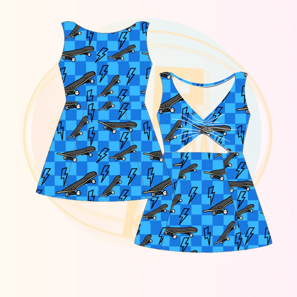 KERU 2025 Girls’ Backless Yoga Dress Tennis Dress Girls Golf Dress With Built in Short Logo Summer Sports Set