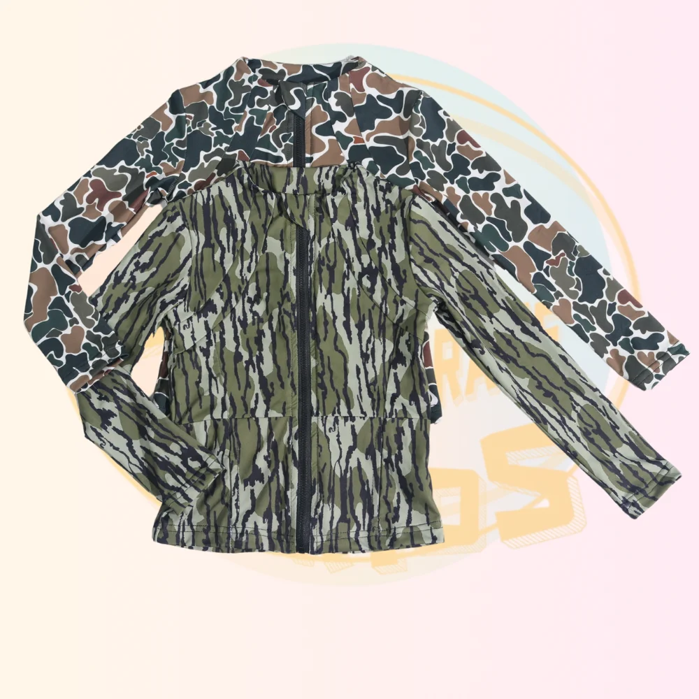 KERUI 2025 Fall Kids BabyChildren’s Camouflage Sports Jacket Long Sleeve Collarless Zipper Hunting Camo Baby Tops