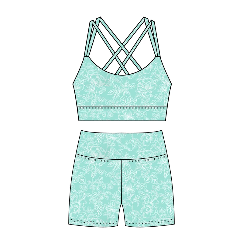 KERUI 2025 Girl Yoga Athletic Wear Toddlers Tennis Golf High Elastic Two Piece Yoga Fabric Printing Bra Biker Shorts Set