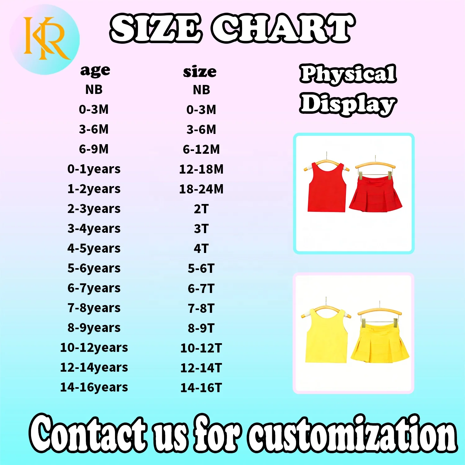 S, M, L, Xl, 6-12M, 12-18M, 18-24M, 2T, 3T, 4T, 5-6T, 7-8T, 9-10T, 10-12T, 12-14T, 16T