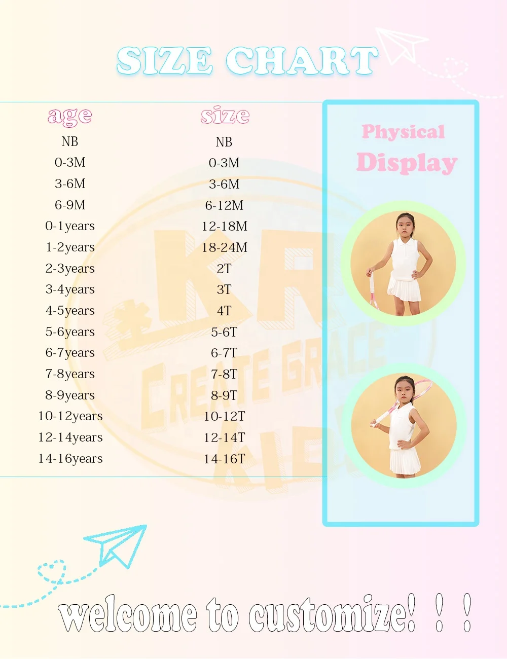 | Size | 2T, 3T, 4T, 5/6, 7/8, 9/10, 10/12, 12/14, 16T |