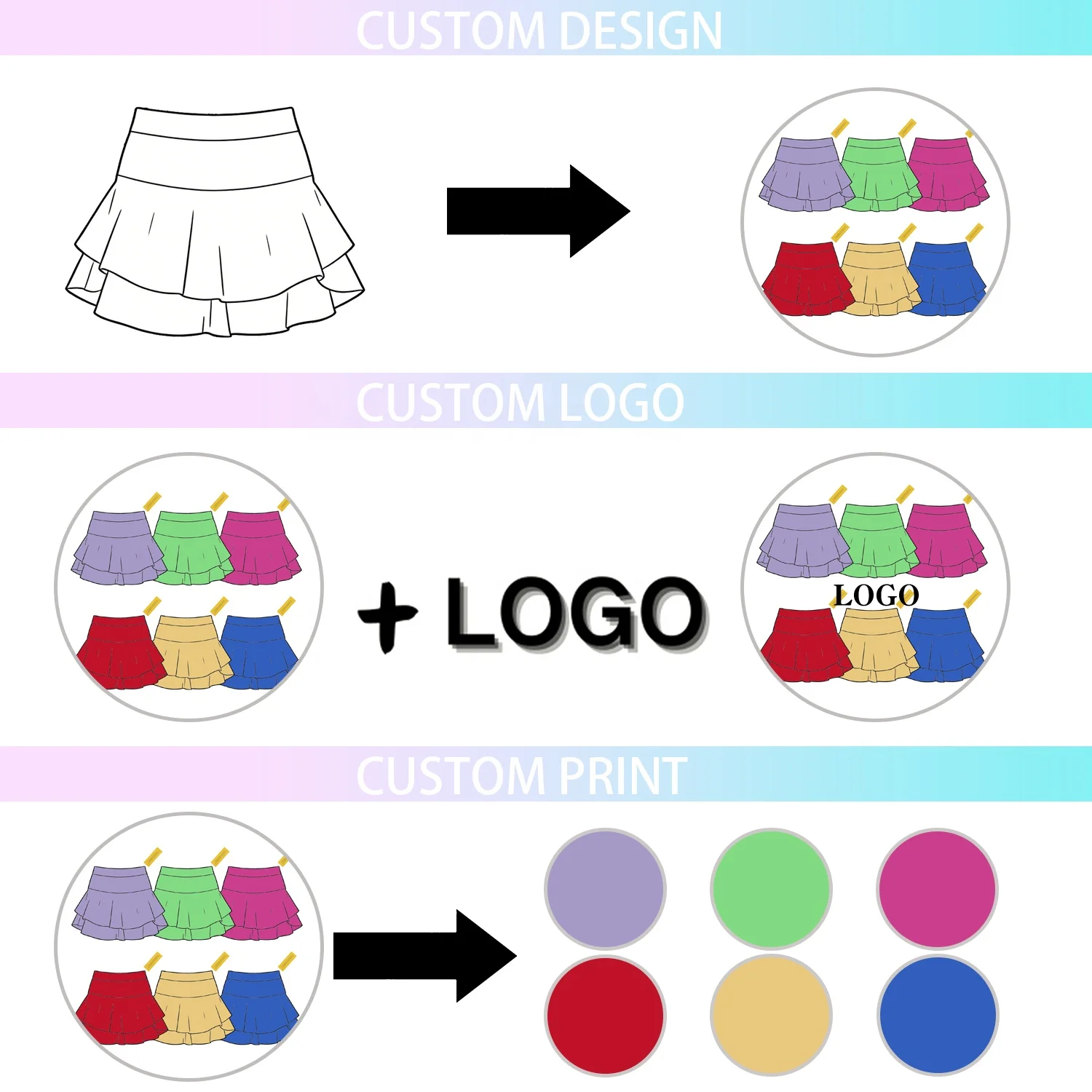 KERUI Custom Logo Boutique Kids Girls Tennis Skirts Activewear Gym Fitness Skirt Built-in Shorts Summer Sports Skort