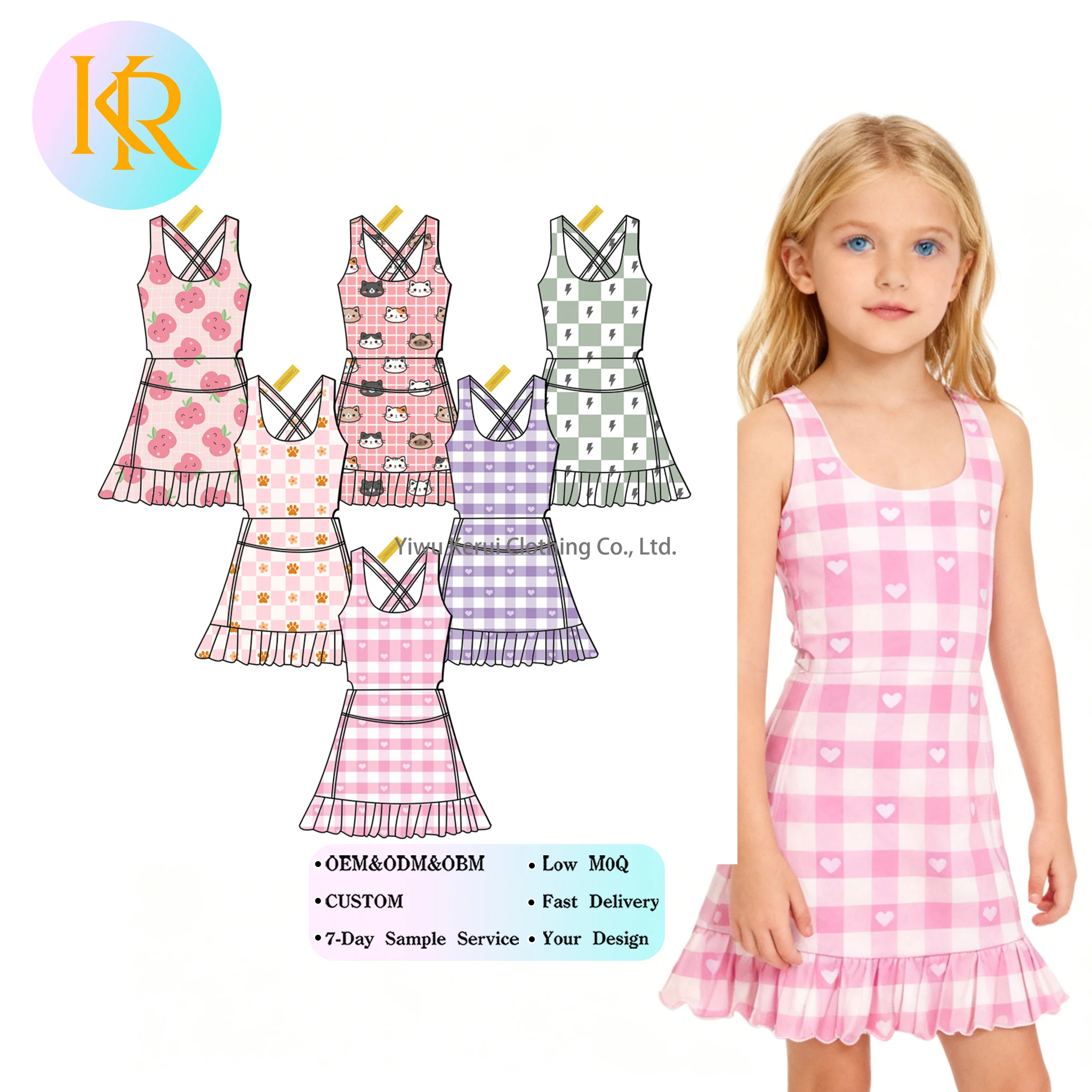 Be the first to review “Kerui Custom Multicolour Sleeveless Summer Baby Girl Clothing Comfortable Fabric Grid Printed Yoga Dress”