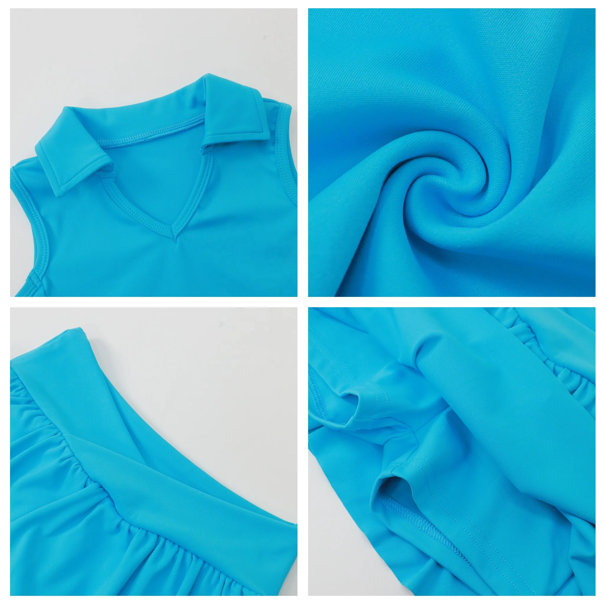 Kerui Girls Active Wear Kids Yoga Set Solid Collared Sleeveless Top Cross Waist Pleated Skirt Built in Shorts Custom Yoga Set