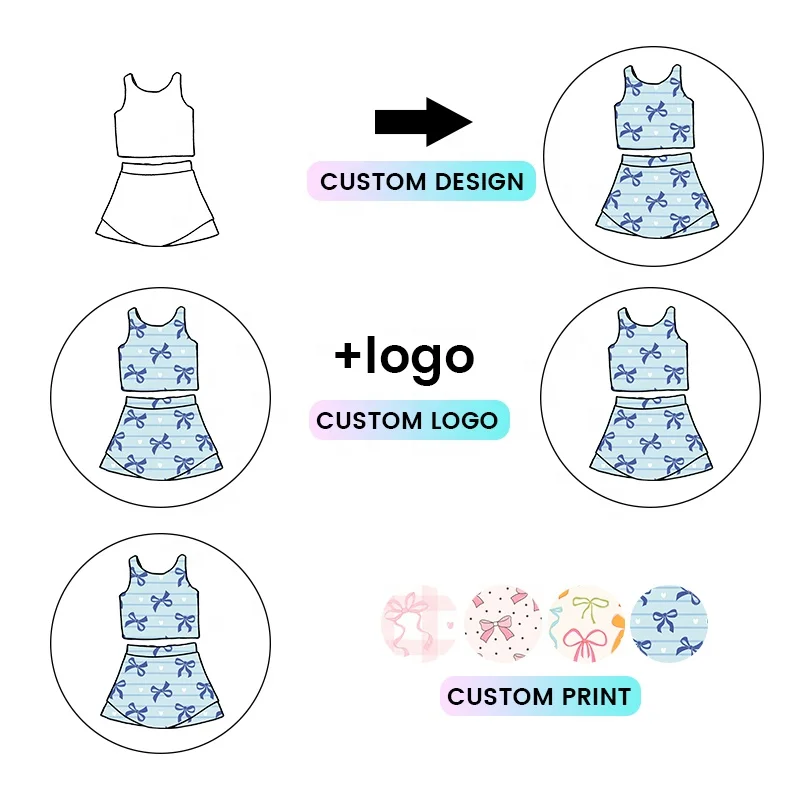 Kerui Girls Athletic Wear Breathable Casual Training Wear Printed Yoga Skirt & Top Gym & Running Outfit 2-Piece Sports Set