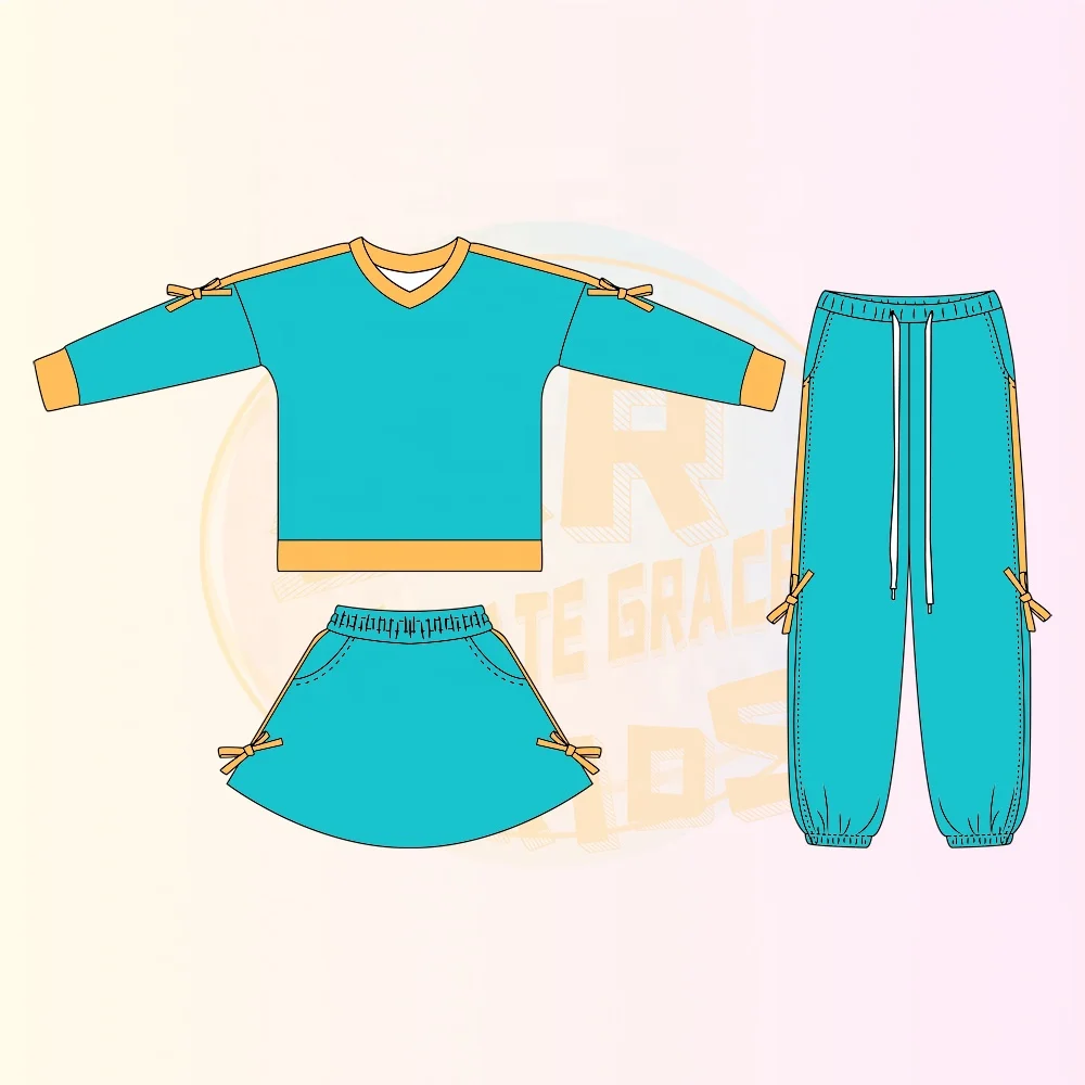 Be the first to review “KERUI Girls’ Solid Color Long Sleeved Bow Top Short Skirt Long Pants Three PCS Kids Workout Sports Suit”