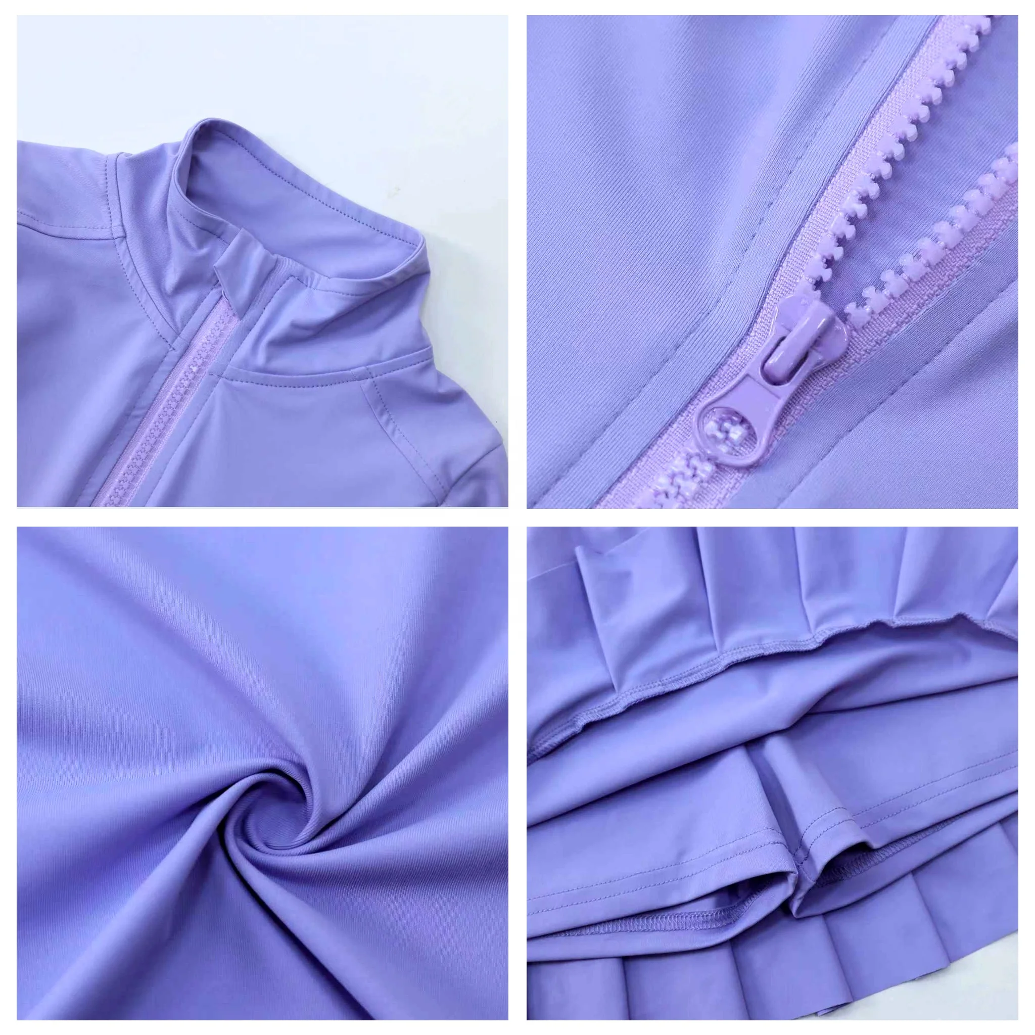 KERUI Girls Sports Customized Macaron Colored Stand up Collar Jacket Skirt Girls’ Yoga Set Girl’s Tracksuit Set Tennis Skirt Set