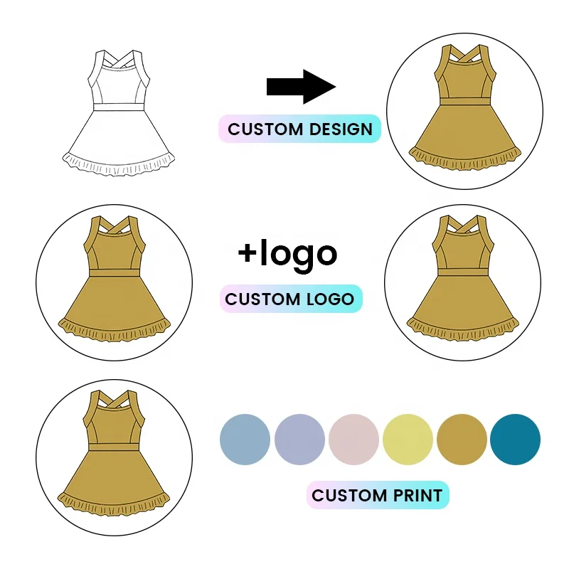 Kerui Girls Summer Active Wear Custom Logo Manufacturer Baby Girl Dance Tennis Dress Sports Fitness Wear Toddler Yoga Dress