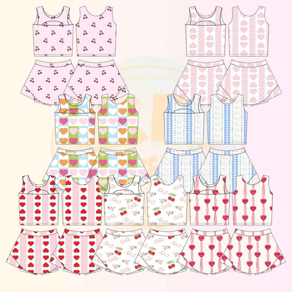 KERUI Girls’ Valentine’s Day Yoga Set Two-Piece Sports Skirt with Semi-Circular Hollow Design Back New Yoga Fabric Print Pattern