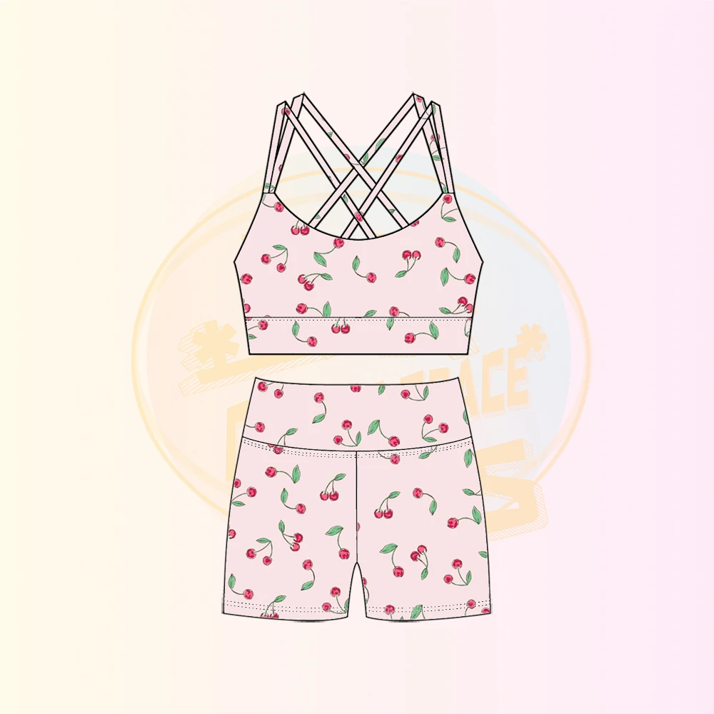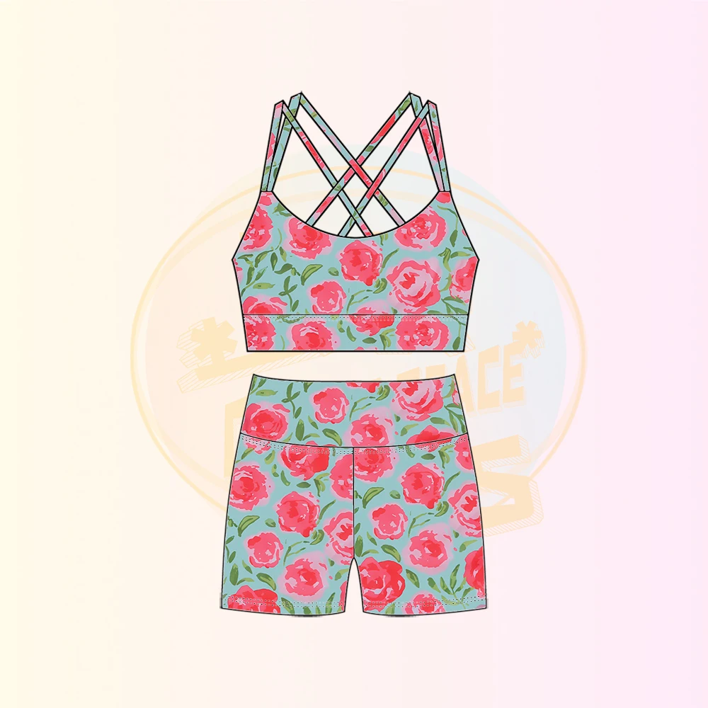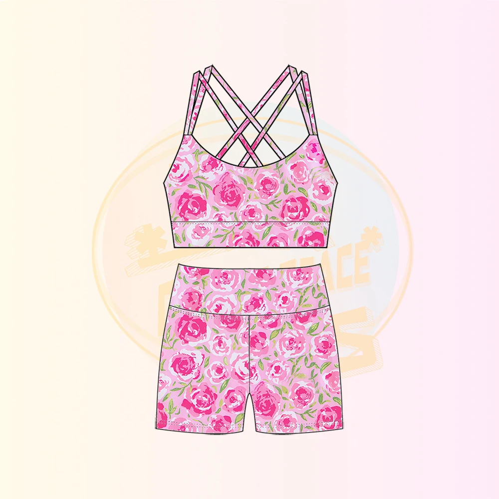 Kerui Hot Sale Floral Pattern Factory Athlete Wear Kids Girl Tennis Sports Wear Girls Sets