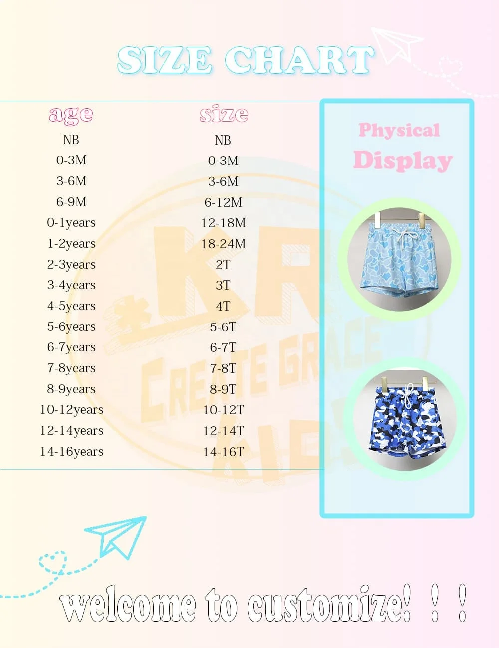 6-12m, 12-18m, 18-24m, 2T, 3T, 4T, 5/6, 7/8, 9/10, 10/12, 12/14, 16T