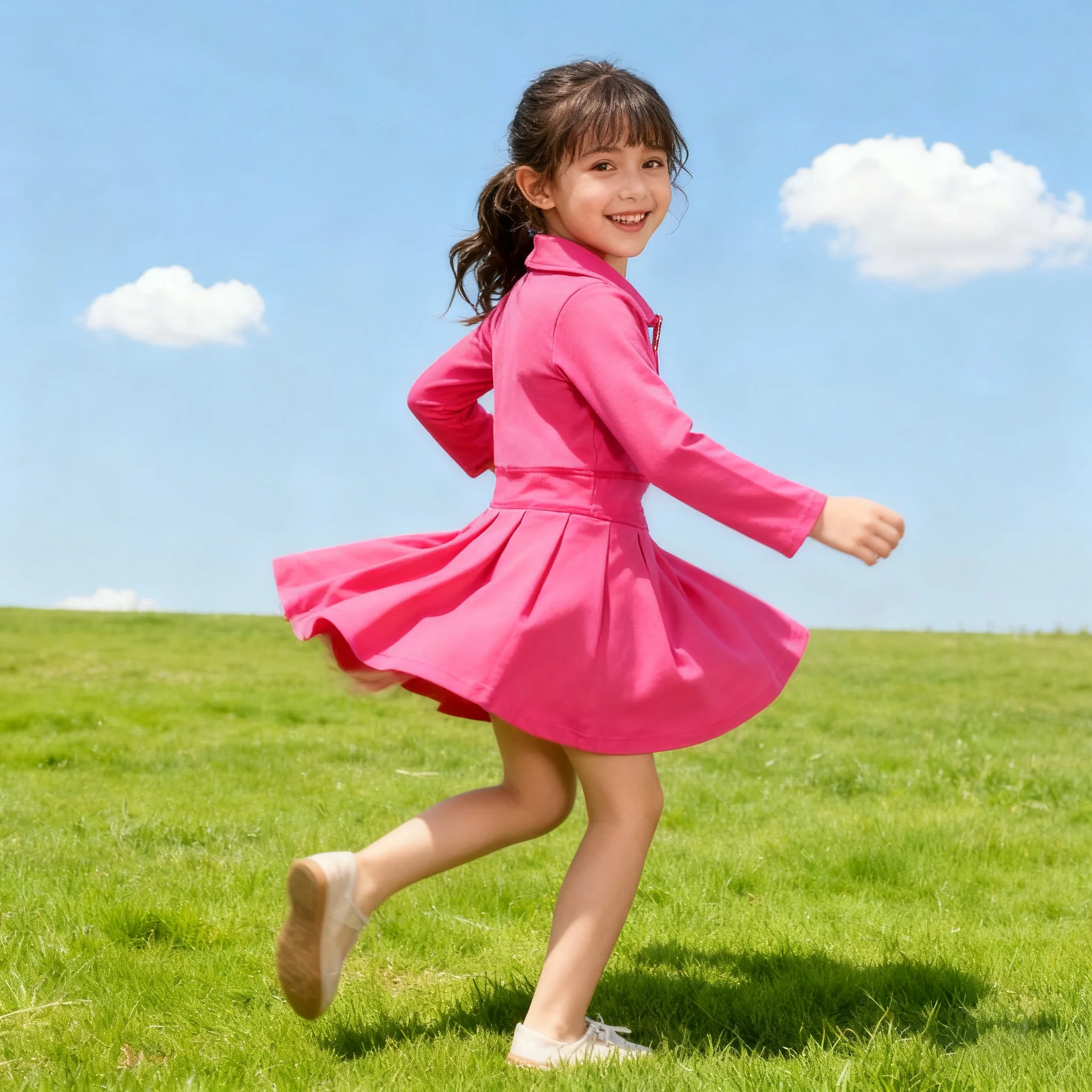 Kerui Long Sleeve Kids Girls Zipper Yoga Dress Children Sportswear Running Activewear with Short Fall Winter Style