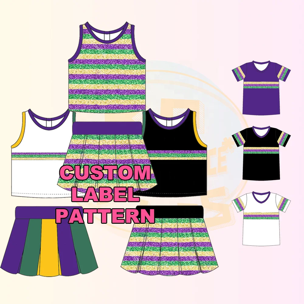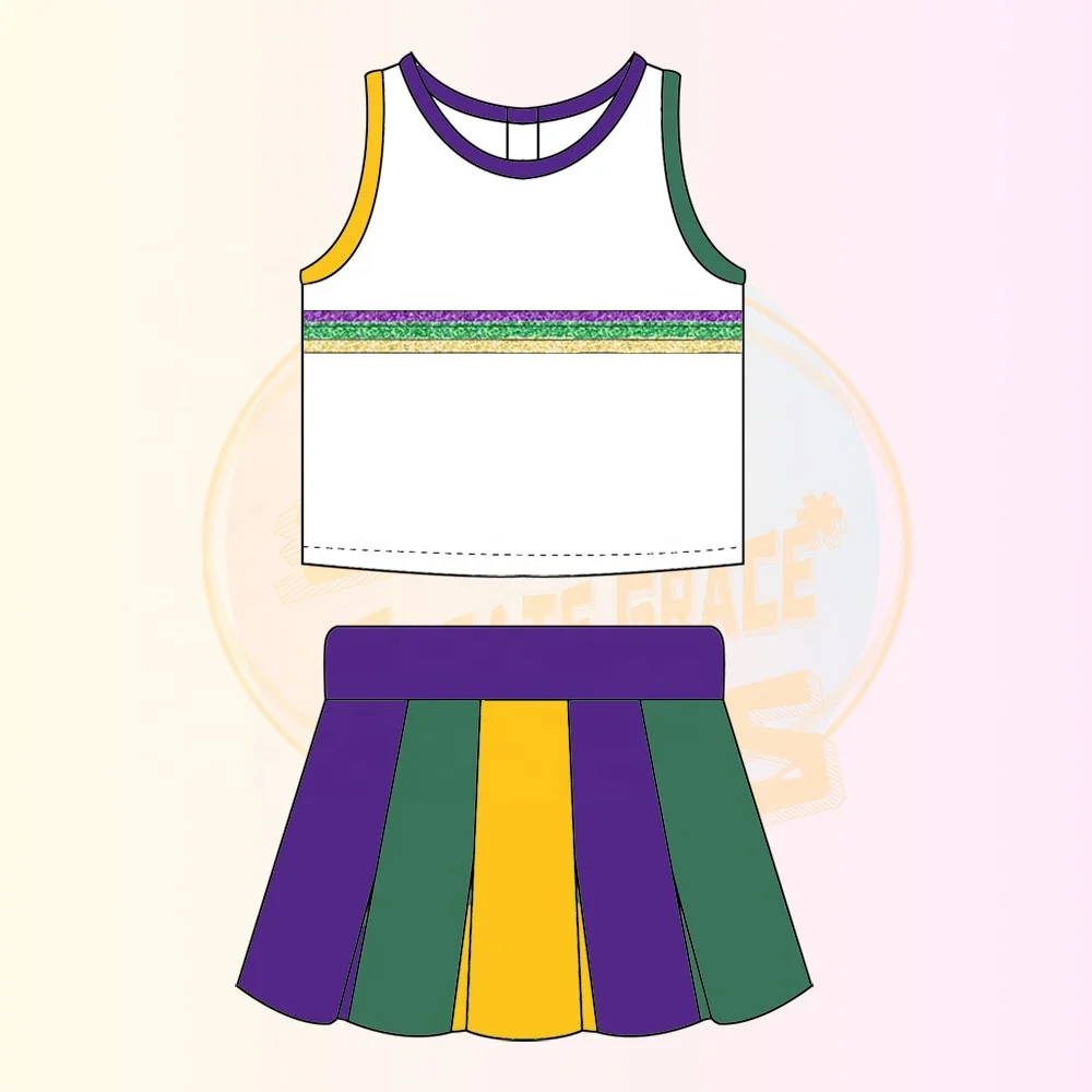 KERUI Mardi Gras Apparel Outfits Set Carnival Outfits Set Toddler Children Girls Purple Green Yellow Color Scheme Sequin Set