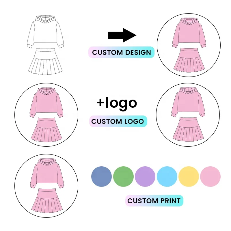 Kerui New Design Girls Solid Hooded Pleated Skirt Yoga Set Long Sleeve Built in Shorts Kids Girls Active Wear Sports Set