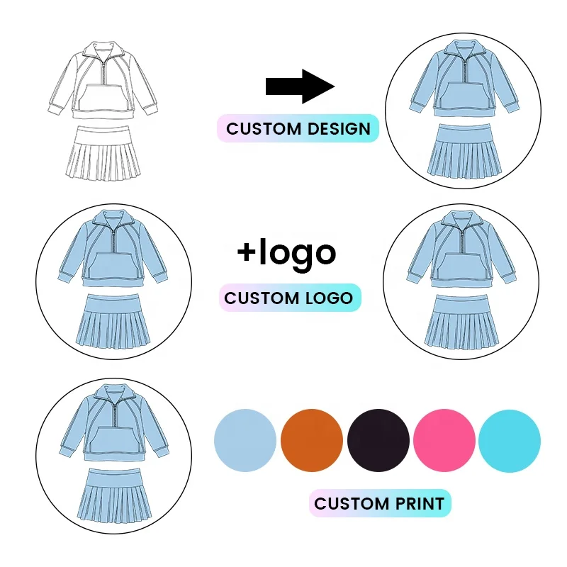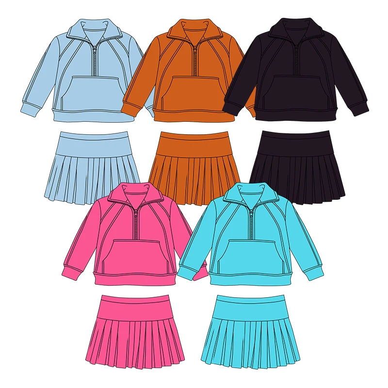 Kerui New Style Girls Sports Girls Yoga Set Spring Long Sleeve 1/2 Zip Pullover With Pockets Pleated Skirt Built in Shorts
