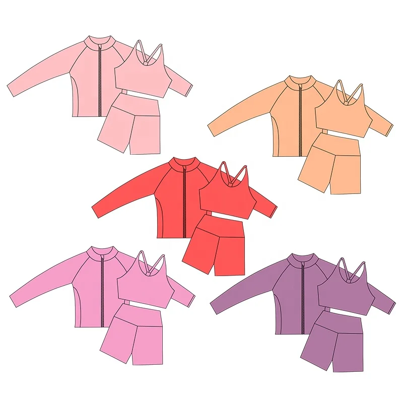 Kerui Quick Dry Girls Athletic Wear Board Shorts Rash Guard Girls Surf Swim Yoga Multi Sport Set Summer Beach Wear