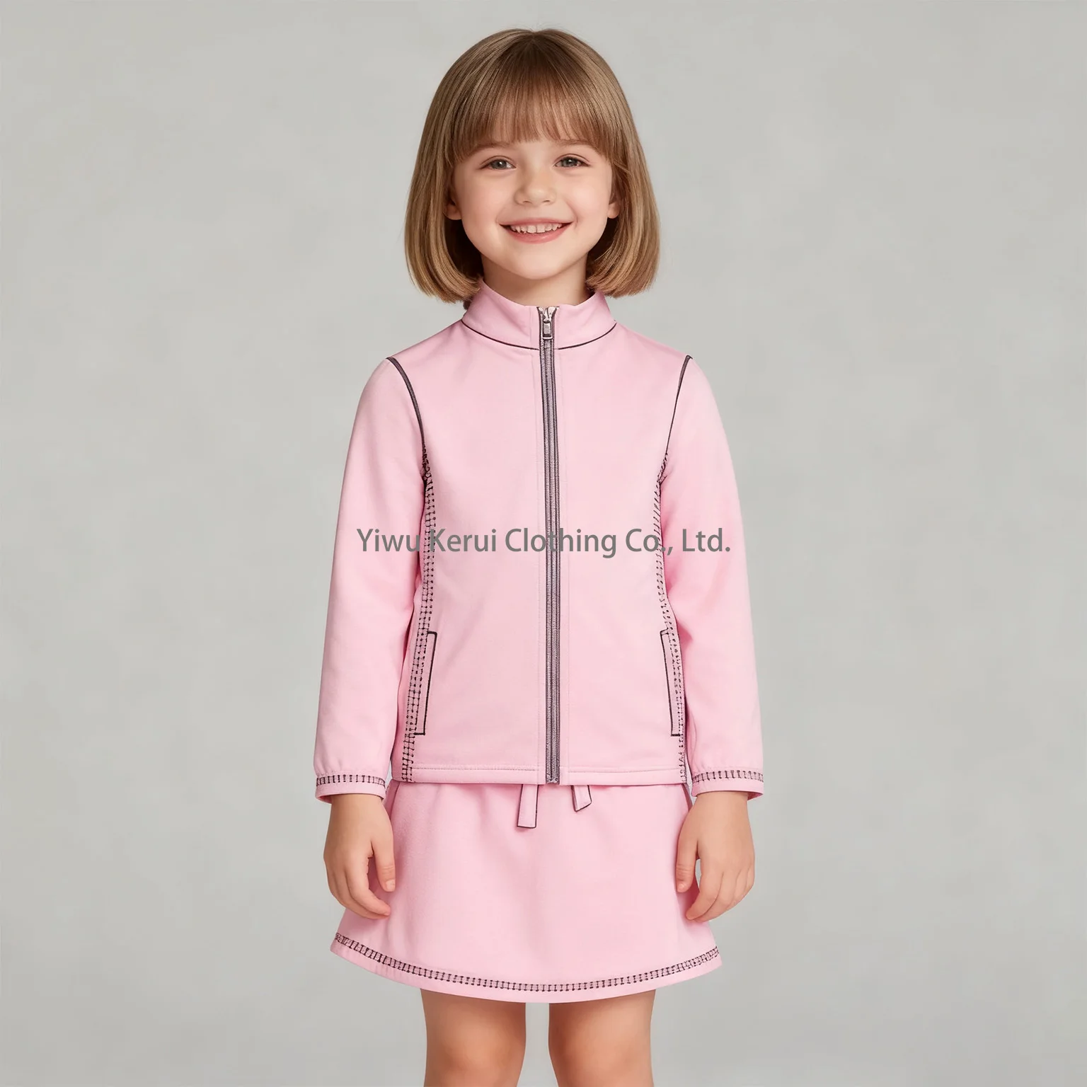 Kerui Solid Pattern Zipper Gym Set for Kids Little Girls Casual Fitness Apparels with OEM Prints Kids Yoga Jacket
