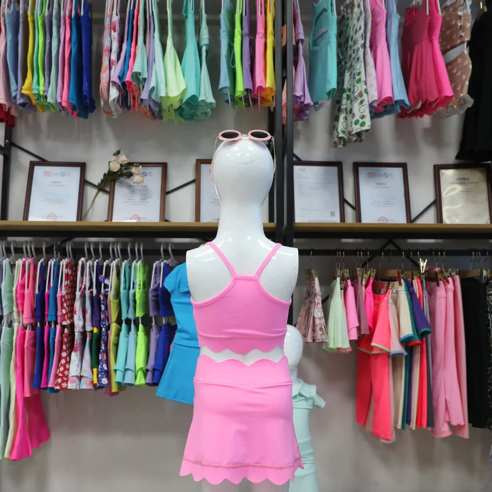 KERUI Wholesale Kids Yoga Tank Top Skirt 2 Piece Outfits Girls Yoga Outfits Infants 77% Nylon 23% Spandex Athletic Sets
