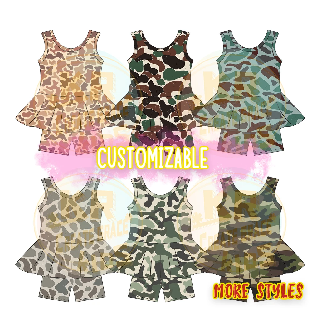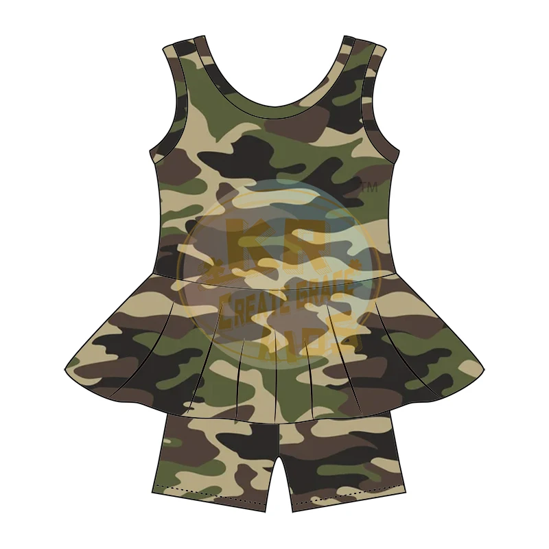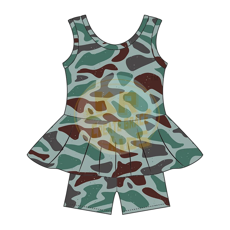 Kids Girls Summer Milk Silk Skirt Camouflage Designed Skirt Sets for Children
