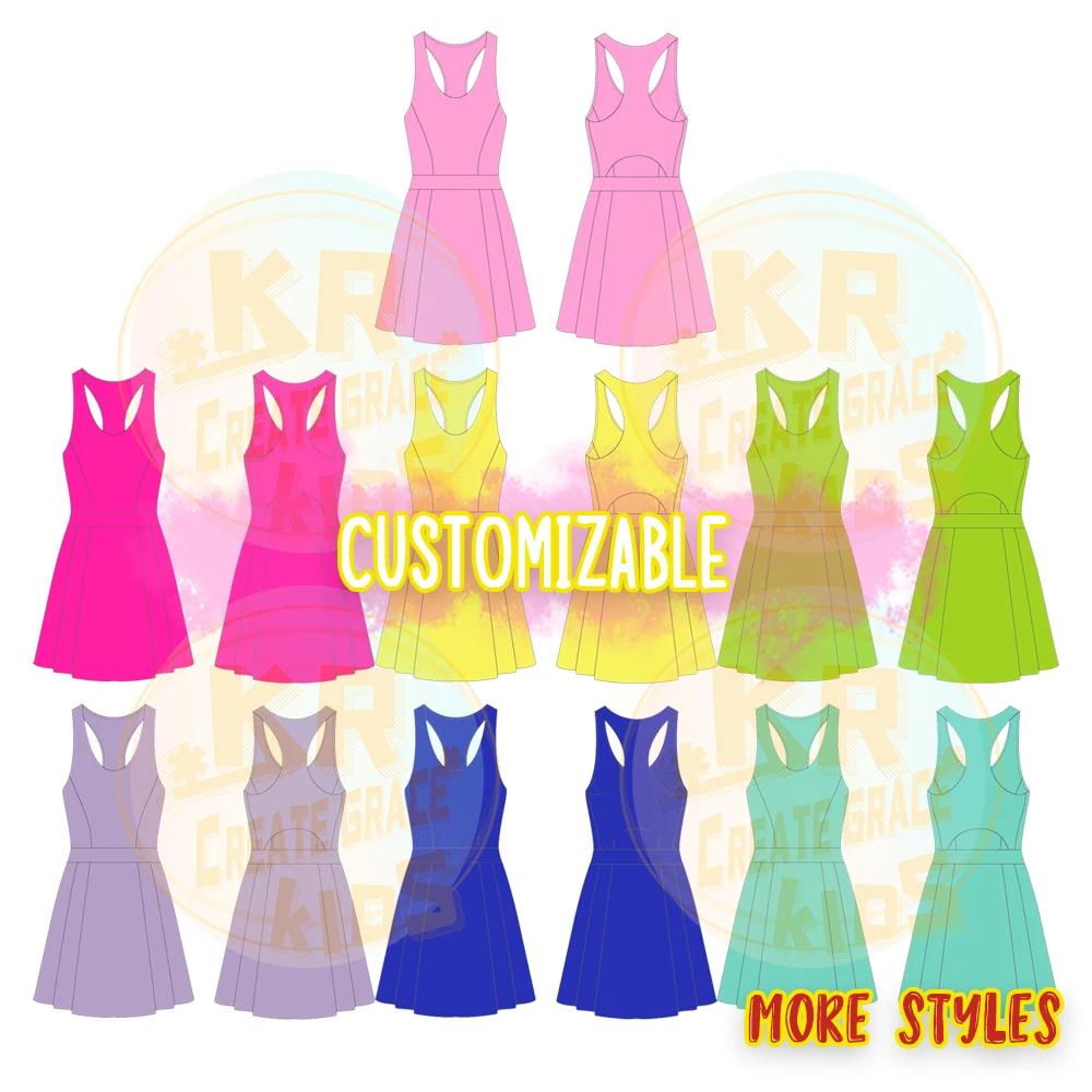 Manufacturer Custom Kids Yoga Clothing Girl Solid Color Sports Wear Tennis Dress for Girls Summer Clothes