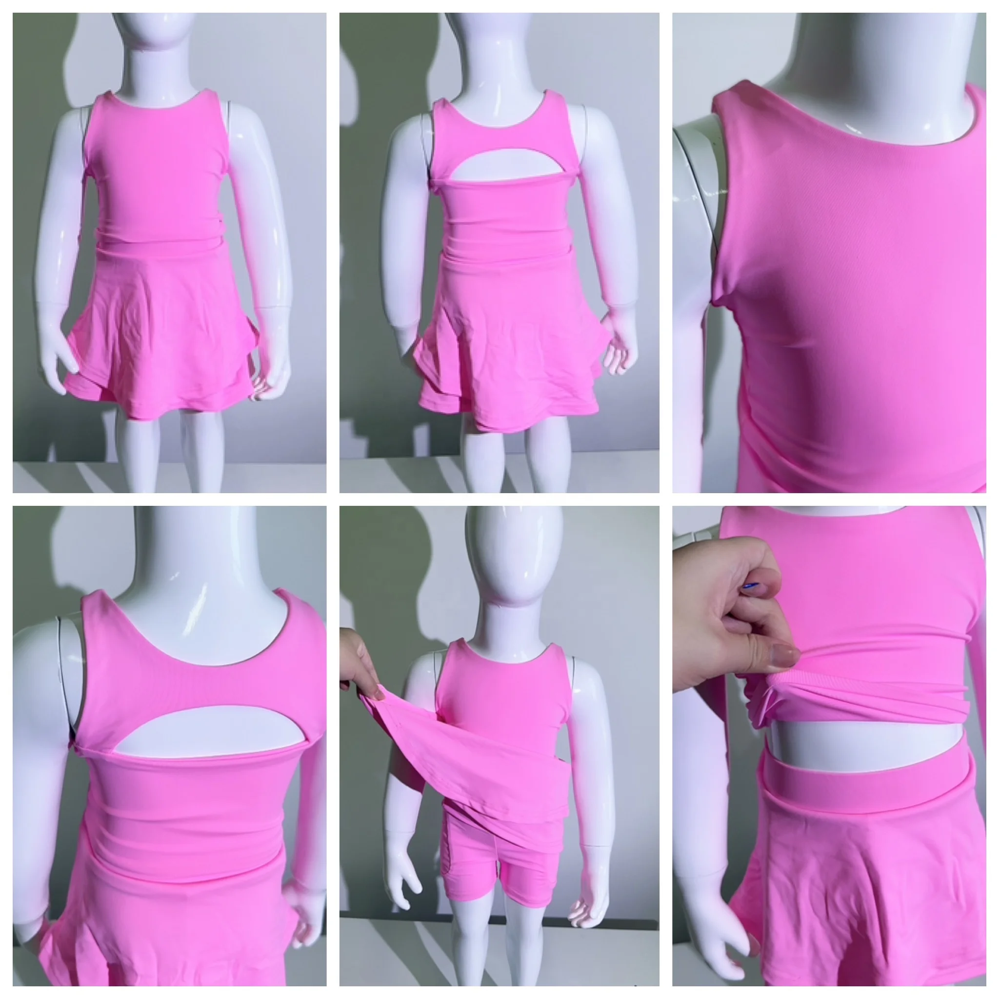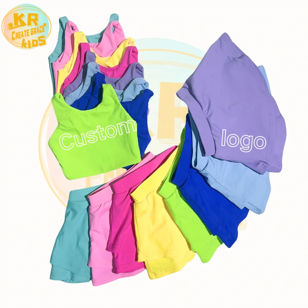 New Arrival Nylon Spandex Youth Girls Yoga Activewear Hollow Children Athletic Boutique Clothing Set Tennis Skirt Outfit