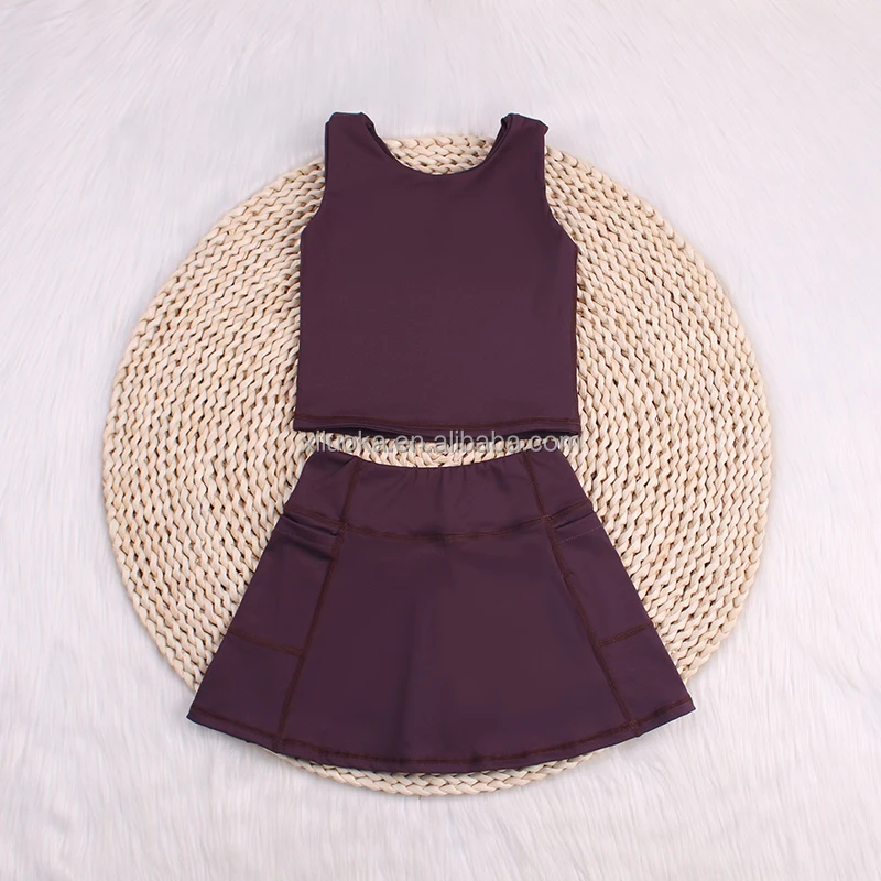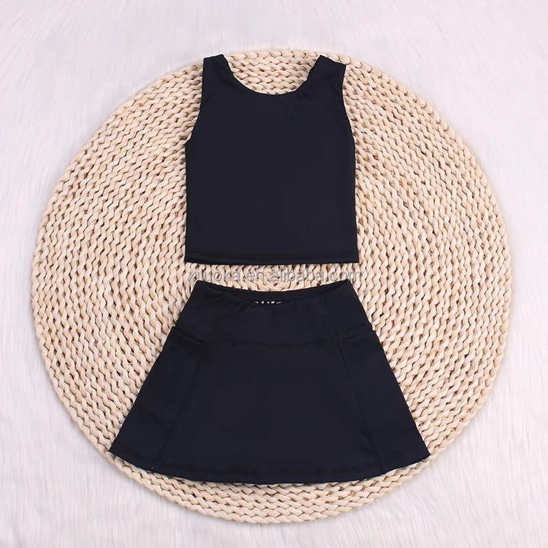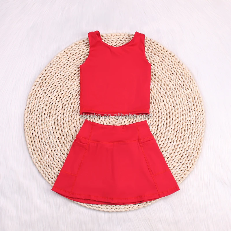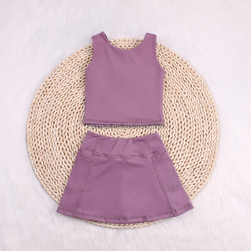 New Design Kids Gym Yoga Wear Children Two Pieces Sets Sports Wear Girl Workout Athletic Skirts Outfits