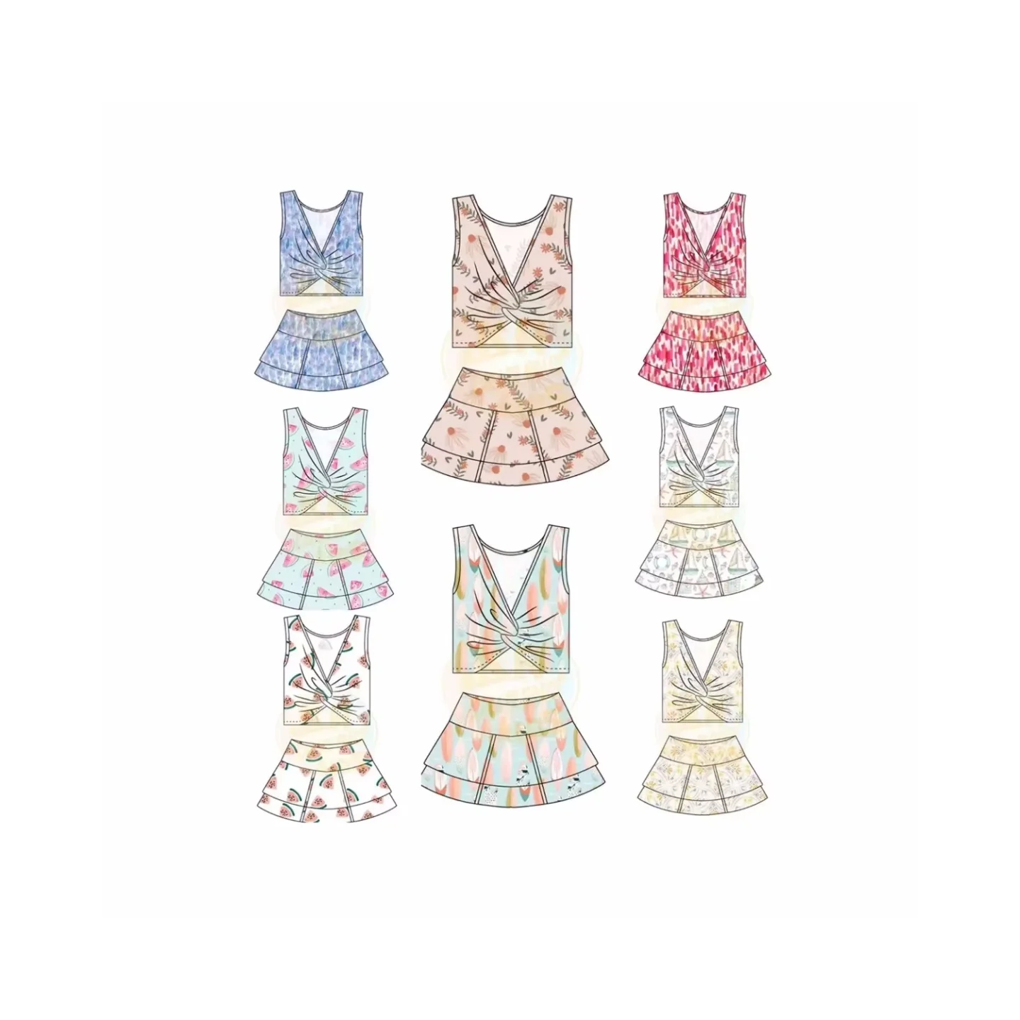 Nylon Spandex Girls Sports Athletic Wear Tennis Skirt Set 2 Piece Yoga and Tennis Skirt for Kids Active Wear for Youth