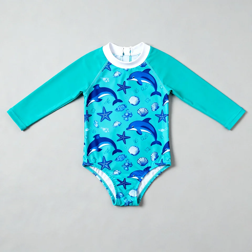 OEKO TEX Animal Pattern Cute Kid Girls Long Sleeve One Piece Swimsuit with Zipper Eco-Friendly for Children Summer Beach Use