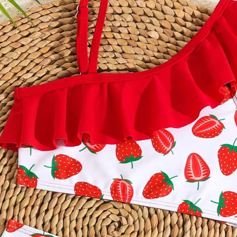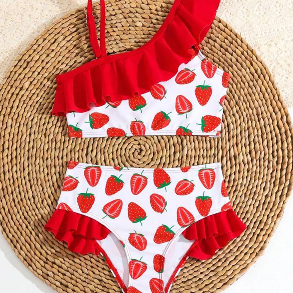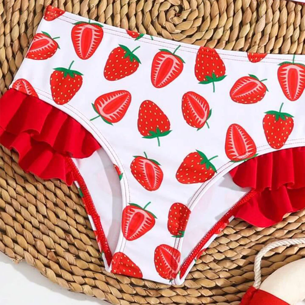 OEKO TEX Children Swimwear Strawberry Print Two Ruffled Piece Girls Swimming Costume UPF 50 Kids Swimsuit