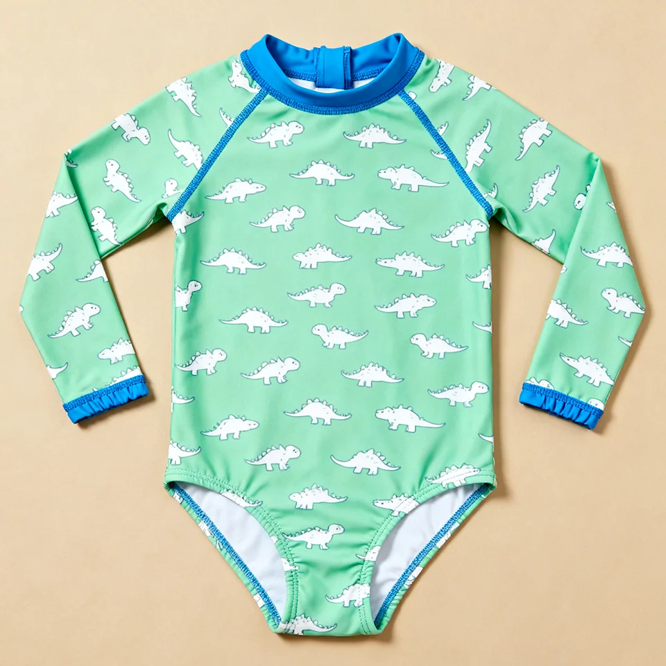 OEKO TEX Custom Children Rash Guard Sustaniable Fabric Sun Protection Eco Friendly Long Sleeve Girl One Piece Swimsuit for Beach