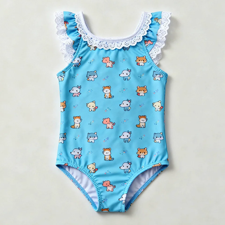OEKO TEX Custom Kids Swimwear Upf 50 Ruffle Bathing Suit Children One Piece Swimsuit for Family Vacations
