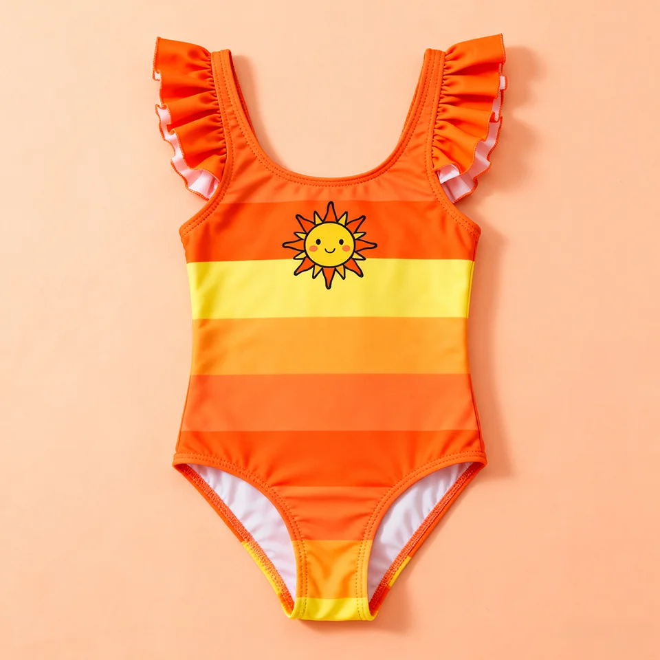 OEKO TEX Custom One-Piece Toddler Girls Swimwear with Sunflower Print Child Beach Wear Manufactured Kids One Piece Swimsuit